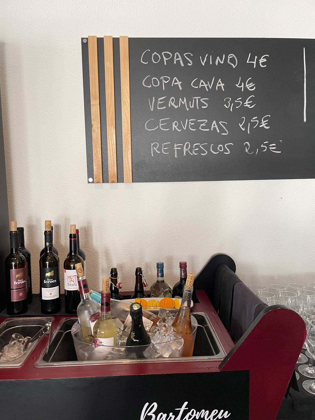 The ‘Migdia’ menu offers five plates and Tomeu’s moreish olive oil bread with spiced mayonnaise. On weekdays, the price of 22€ includes a half litre of water per person (water costs extra on Saturdays, Sundays, and weekday public holidays). Other drinks are at an extra cost and are self-service. Help yourself from the wide choice and tell Tomeu what you had when it’s time to pay. A glass of wine or cava – poured yourself – costs 4€, and bottle prices seem reasonable. Beers and soft drinks cost 2,50€. Little wonder that Bartomeu is popular.