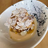 Dessert was described on the English menu as ‘Musician’s cake in our style’. It was more a tempting pastry than a cake, with layers of flaky pastry, apricots, toasted slivered almonds, and crème patissiere. I’ve eaten Tomeu’s food many times over the years and he’s a master of flavourful dishes whatever he cooks.