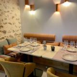 Batec has some pavement tables at the front for drinks. Indoors, the dining area has some exposed-stone walls, ceiling beams, appealing lighting, good furniture, and quirky decorative touches such as a wall decorated with straw hats.