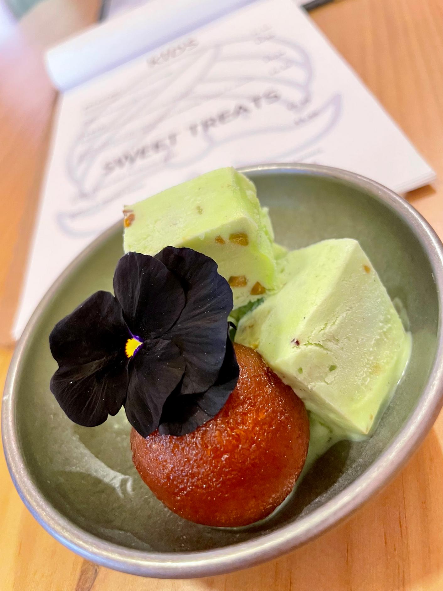 I ended with gulab jamun and kulfi (5€). Although unfamiliar to me, this berry-shaped, fried dough ball, soaked in a rose-flavoured sugar syrup, is a popular sweet treat at Indian celebrations. The kulfi was less dense and easier to spoon into than one I recently tried elsewhere.