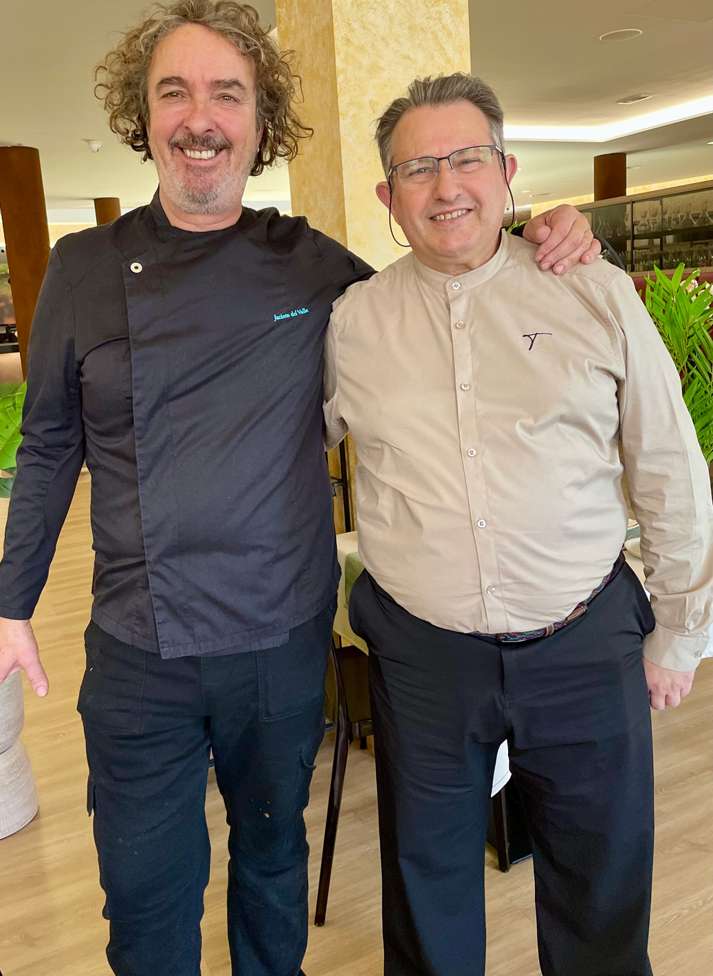 We both had meat main courses: Mallorcan black pig cheeks with a juniper sauce (25€) and free-range chicken, stuffed with pork, ‘Jaume I-style’ (21€). Both were tasty but the accompaniments didn’t quite match the menu description. When I asked about this, Joan told me the menu was incorrect. I’m sure this will be amended.