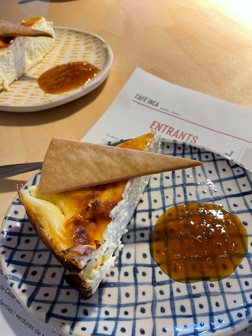The autumn/winter menu is printed on a paper placemat and, in addition, there’s a blackboard of the week’s suggested dishes. The menu was in Catalan but is also available in English. At Café Inca you can eat as little or as much as you want, and we opted for a three-course lunch.