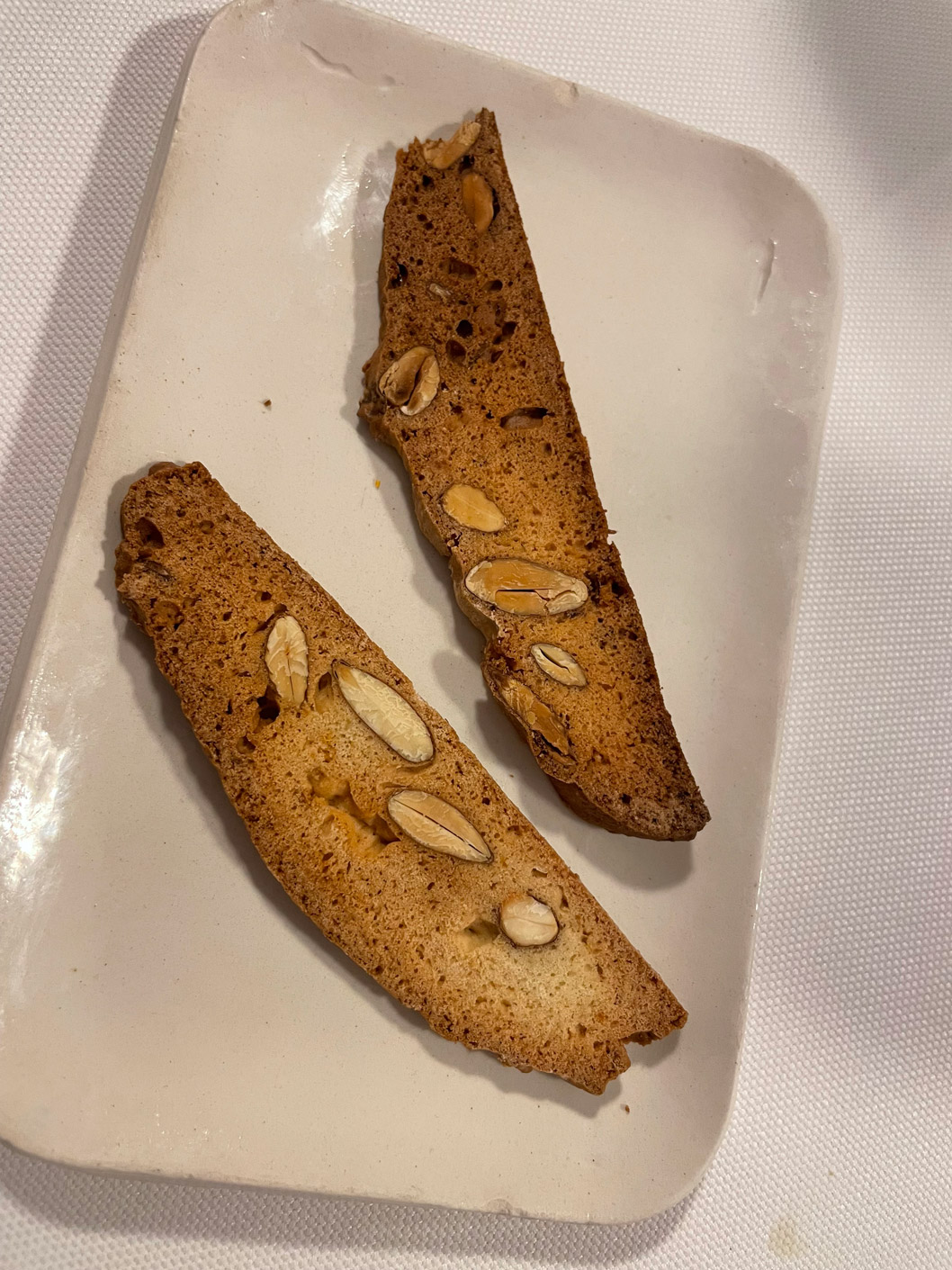 Cati asked if we wanted bread, oil, and salt – an extra 1,90 € per person. I’ve noticed several restaurants now ask whether diners want bread, rather than automatically serving it and bumping up the bill. We had the ‘xeixa’ wheat bread, which had a good crumb and partnered well with Mallorcan olive oil and salt flakes.