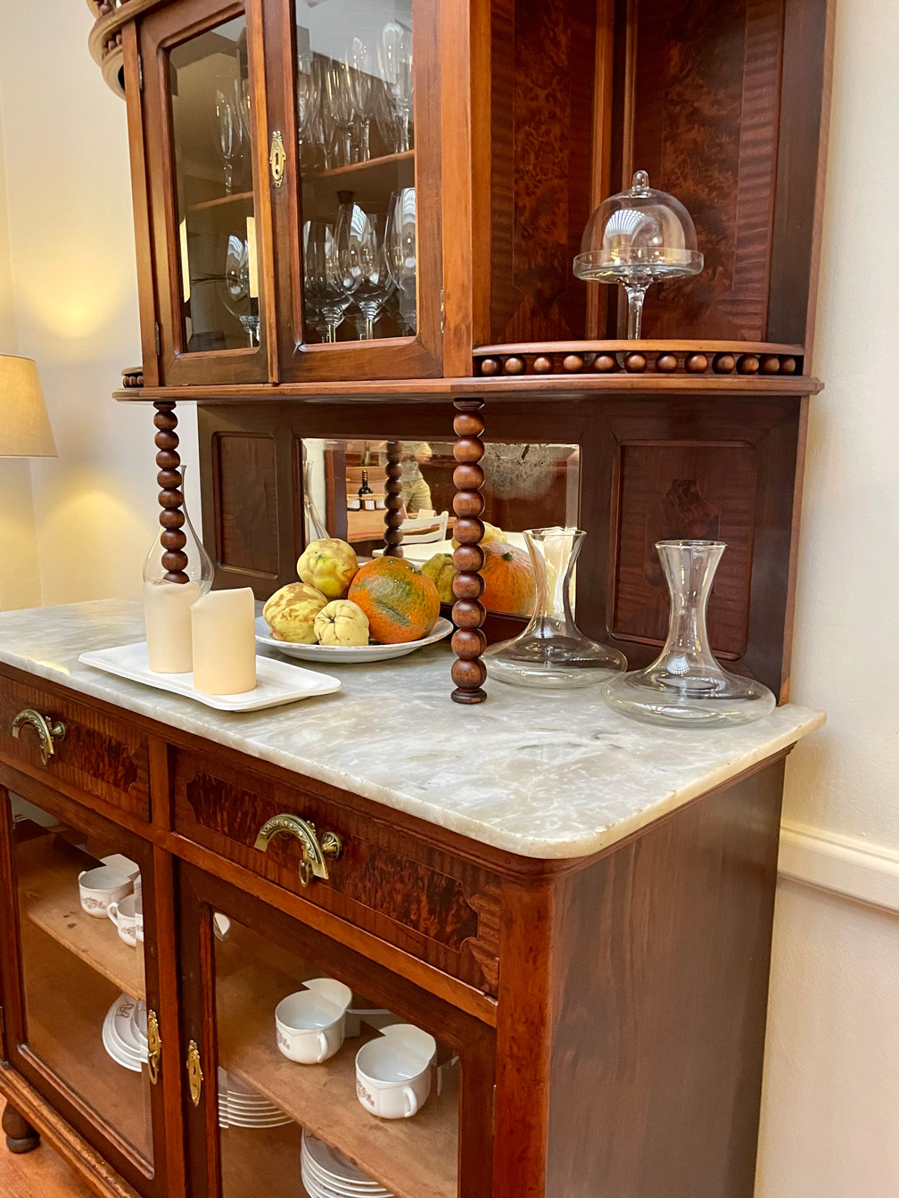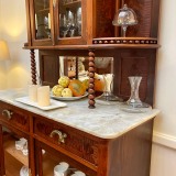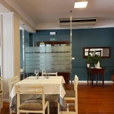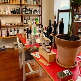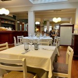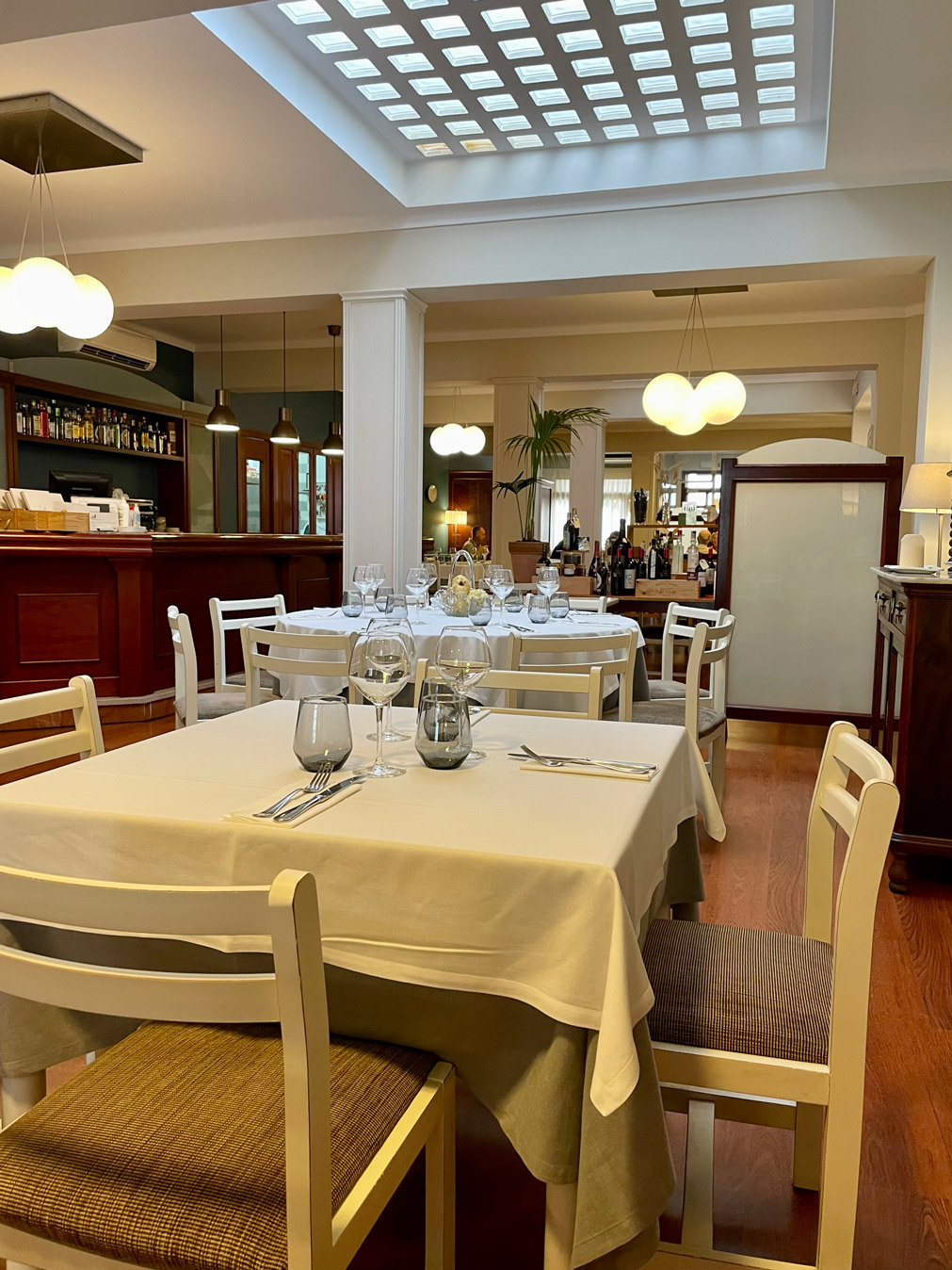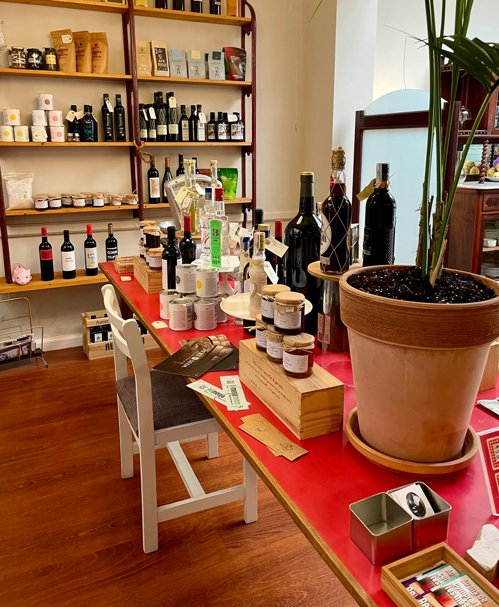 The restaurant is smart, with white tablecloths and gleaming glasses and cutlery. The contemporary décor includes a wall display of framed, old photographs, a handsome grandfather clock, and some traditional furniture. In the centre of the restaurant, a small retail area offers local food products and artisan goods for sale – a good opportunity to pick up a foodie gift or two.