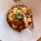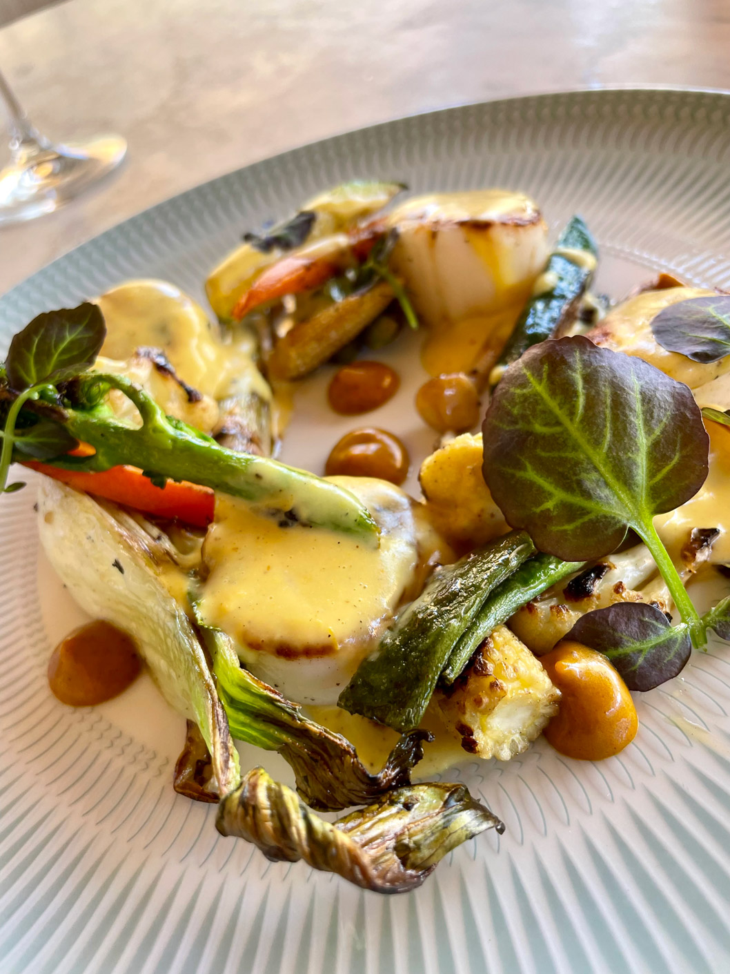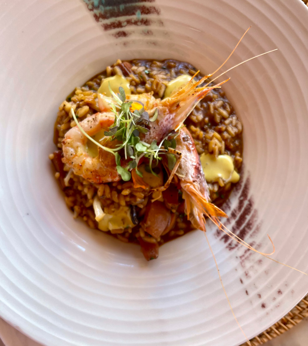 Our main course dishes were perfectly grilled, plump scallops with seasonal vegetables and a sauce of aji amarillo (a hot chilli pepper, also from Peru) (30 €), and a creamy Mediterranean rice dish of red shrimp, cuttlefish, and vegetables, which my companion said was full of flavour and moreish (30 €).