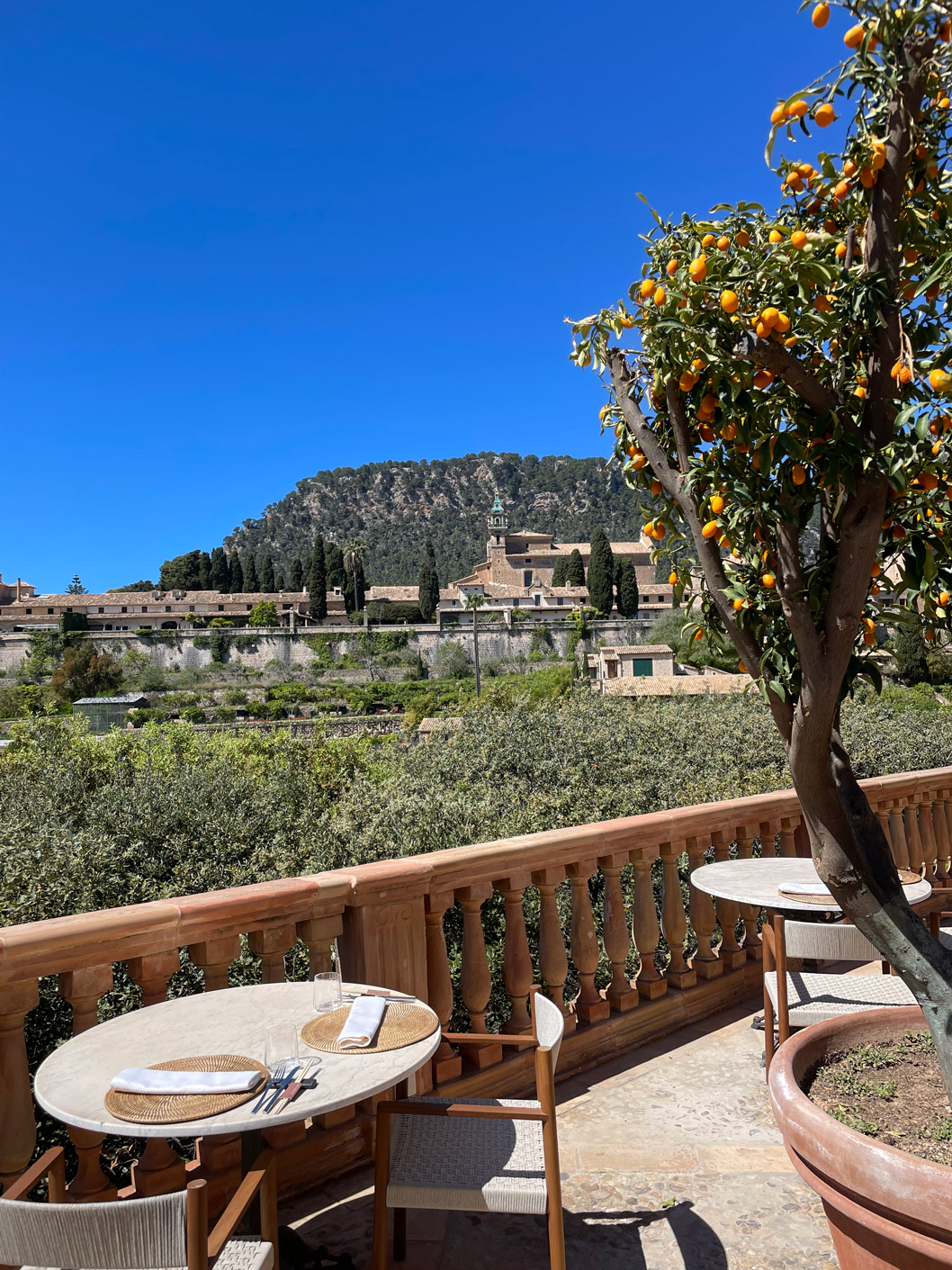 For our lunch, we had the choice of the attractive dining room and two terraces – one of which faces La Cartuja, the charterhouse where Chopin famously spent a winter. Diners can use the hotel’s car park during their restaurant visit.
