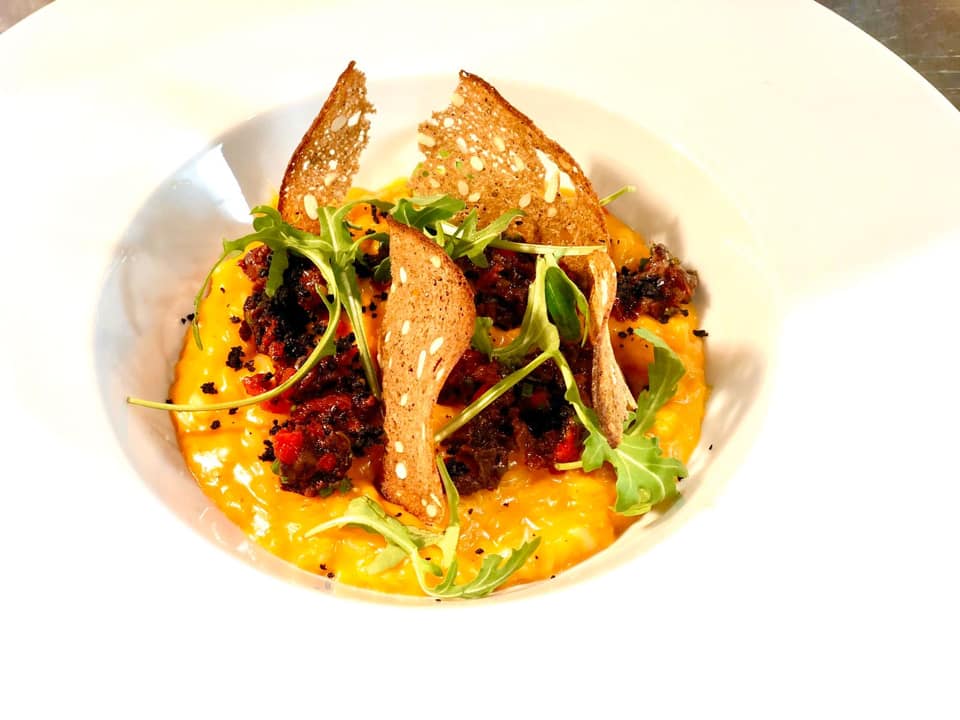 This restaurant in Sa Gerreria has plenty of natural light from large windows and an attractive but unfussy interior, seating around 30 people. A cute terrace outside has heaters and blankets available. When we arrived for lunch – without a reservation – almost every table had been booked, but we were eating early that day and snaffled one of the few tables that weren’t reserved.