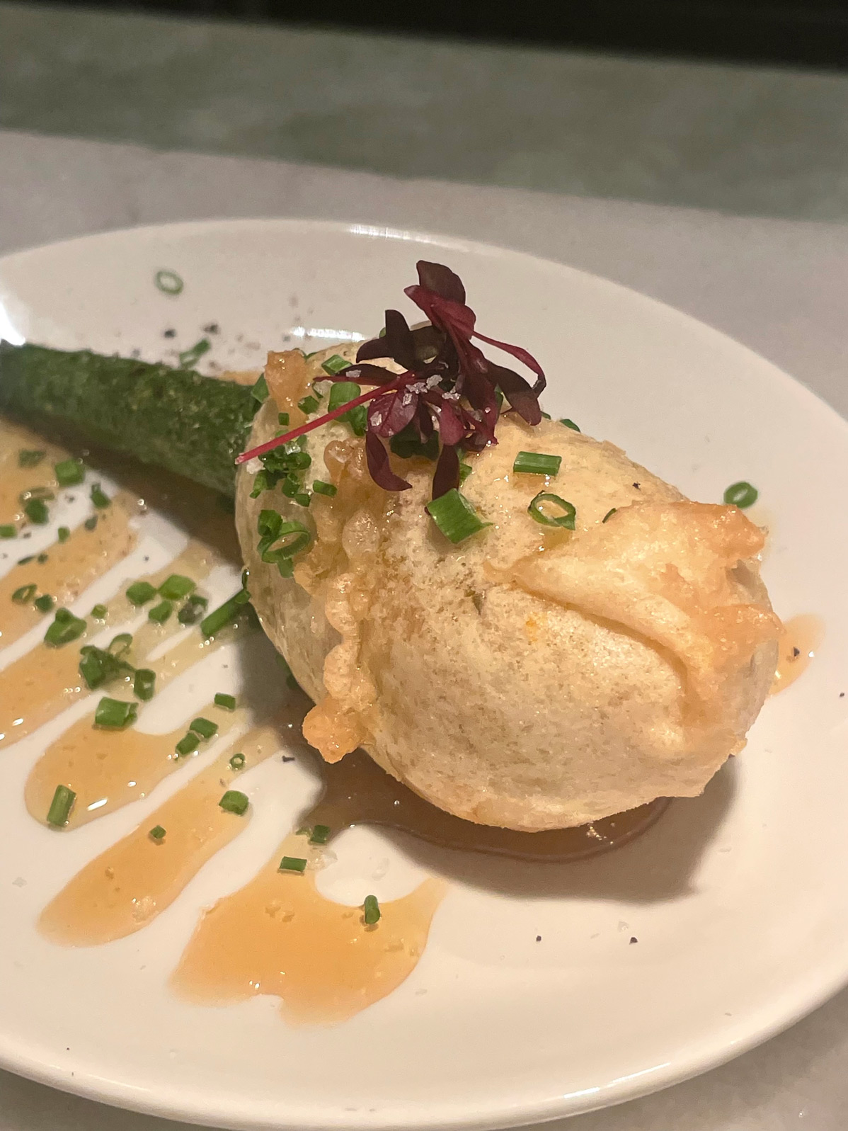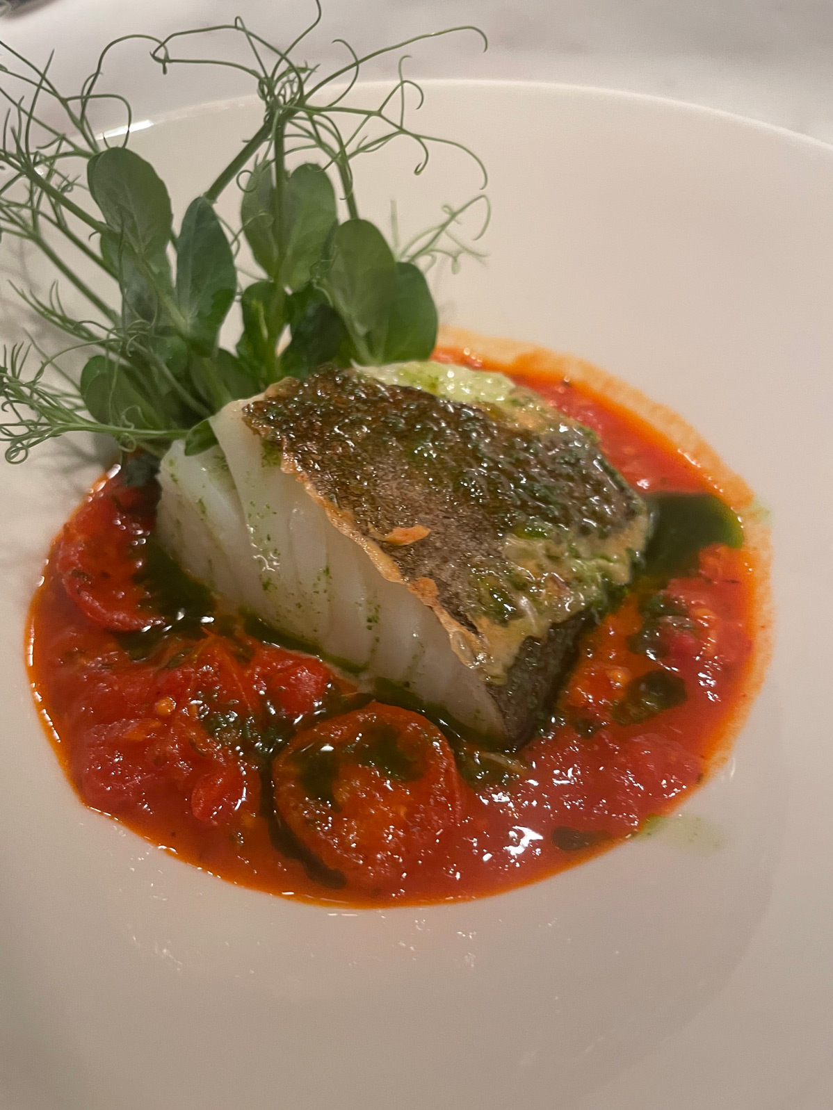 We ordered ‘pimientos de Padrón’, goat’s cheese-stuffed courgette flower, queen scallops, the classic Basque cod ‘a la bilbaina’, and a generous portion of El Camino’s moreish fries. Desserts on offer include ‘tarta de Santiago’, lemon brûlee, and the hazelnut and chocolate spheres that are ideal for a sweet but small ending to your meal.