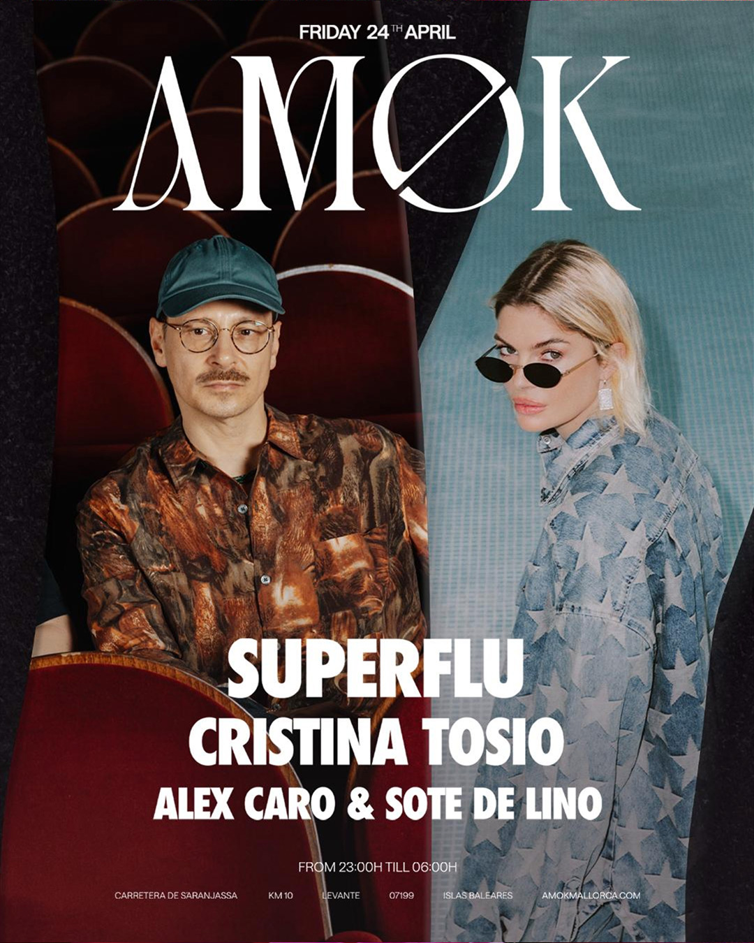 Super Flu, a leading name in house and melodic techno together with DJ and producer Cristina Tosio, closely linked to Ibiza’s electronic scene have prepared a night you won’t want to miss — with top support from Alex Caro & Sote de Lino.