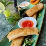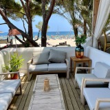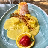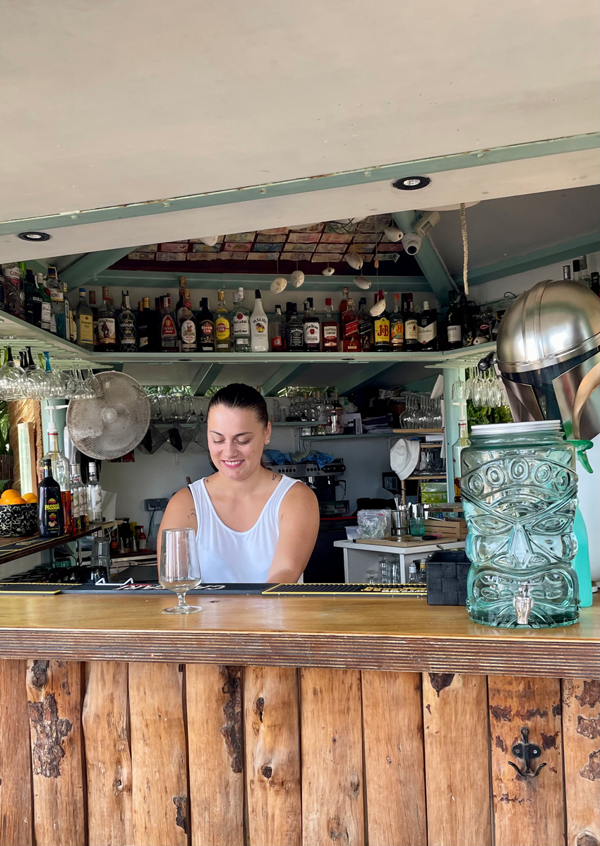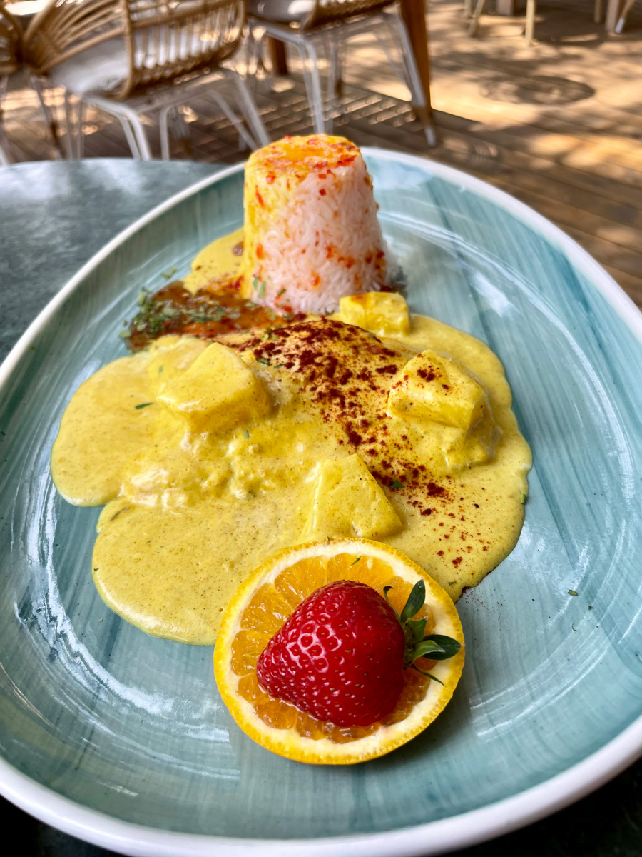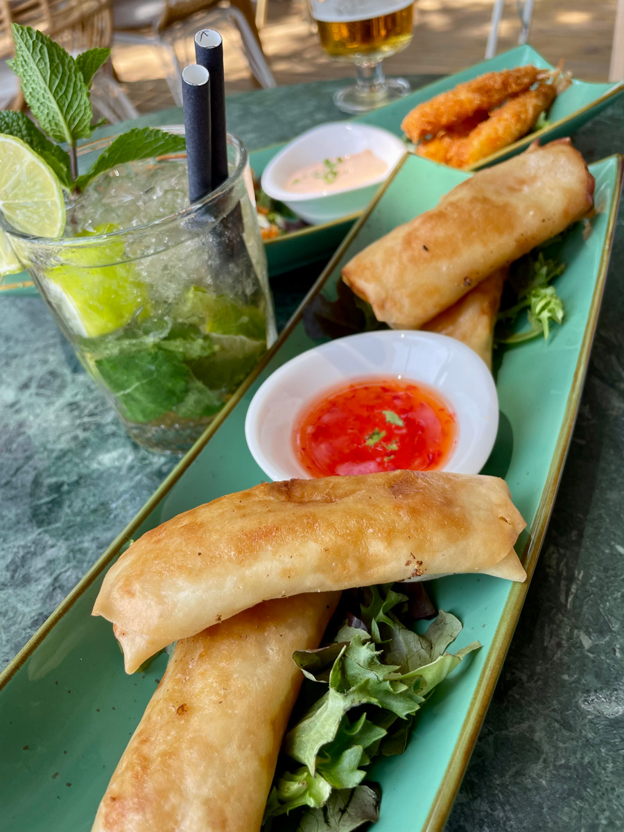 You sit shaded from the sun by palm and pine trees. My usual enthusiasm for eating lunch had been dimmed by the baking-hot day – until I discovered the blissful benefits of the shady garden and cooling sea breezes.