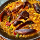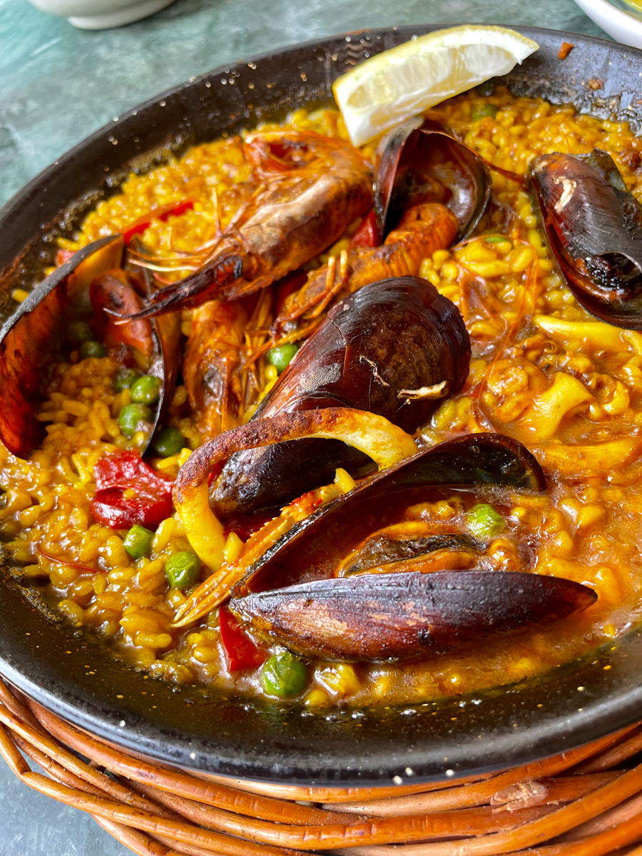 This season, Javier has added paellas (all at 19,50 €) to the eatery’s offering and if you’re alone in wanting paella, it’s available here for one. The seafood paella tempted me, but I’d recommend the original offering of pizzas – the people behind us were raving about theirs. We ended lunch with a decent coffee served with a small biscuit. Service was efficient and friendly.