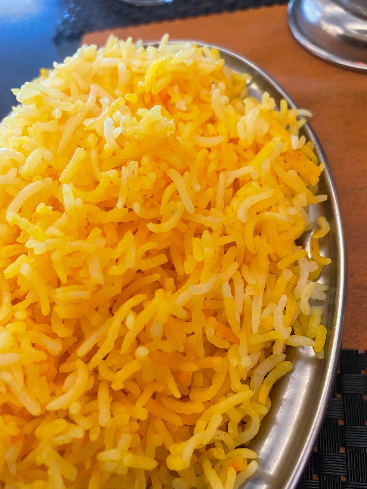 The menu is an extensive one, with appetizers, starters, curries, specialities of the house, vegetarian dishes, ‘sizzlers’, biryanis, rice choices, naan and roti, salads, and a few children’s dishes.