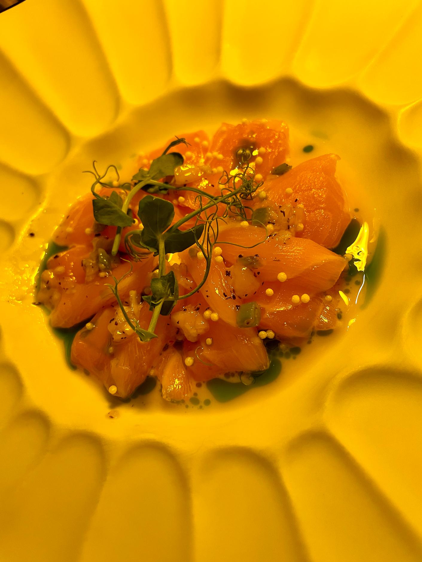 We were there for one of the tasting menus, which are for a minimum of two people sharing. There are six, eight, and nine-step options, and we had the eight-step (at 85€ per person).