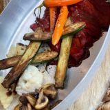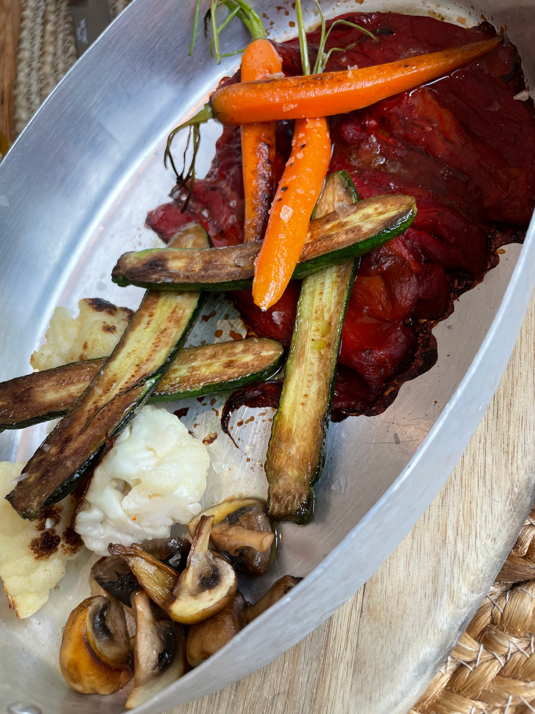 From the six main course dishes (one of which was the fish of the day), we both chose deboned coquelet chicken, or poussin, in a delicious lemon sauce (25€). Garnishes are extra here, with a choice of three. I was tempted by the Sa Pobla French fries (8€) but went for a guilt-free garden salad instead (11€); my friend had a very generous dish of grilled seasonal vegetables (13€).