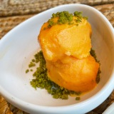Our server suggested we shouldn’t miss dessert as they’re special. I chose grilled pineapple with yuzu ice cream, citronella and lemongrass – a zingy end to lunch (12€). My friend had a vegetable and citrus sorbet, scattered with chopped pistachio nuts. (10€).