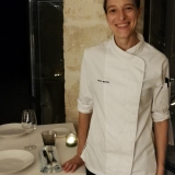 Our server suggested we shouldn’t miss dessert as they’re special. I chose grilled pineapple with yuzu ice cream, citronella and lemongrass – a zingy end to lunch (12€). My friend had a vegetable and citrus sorbet, scattered with chopped pistachio nuts. (10€).