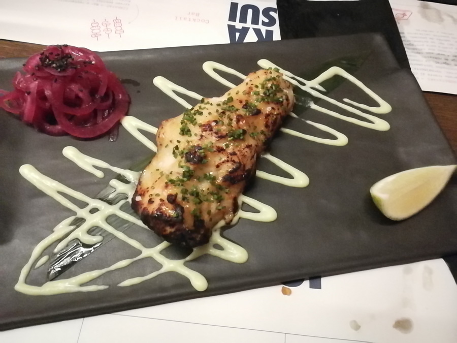 Every dish at Kasui was packed with flavour and interest and it would be hard to pick favourites. However, I’ll wave the flag for the soft-shell crab tempura with Japanese BBQ sauce (7,90 €), the miso-marinated seabass with daikon emulsion (12,90 €), and the meltingly tender beef-fillet skewers with spring onion and yakiniku sauce (8,50 €).