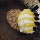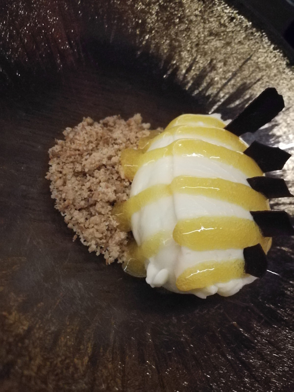 Our dessert of white chocolate and yuzu ganache with coconut crumble and passion fruit (5 €) was both rich and refreshing. And too good to share. Something to remember when you eat at Kasui Japanese grill and cocktail bar.