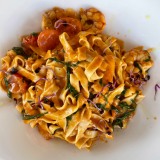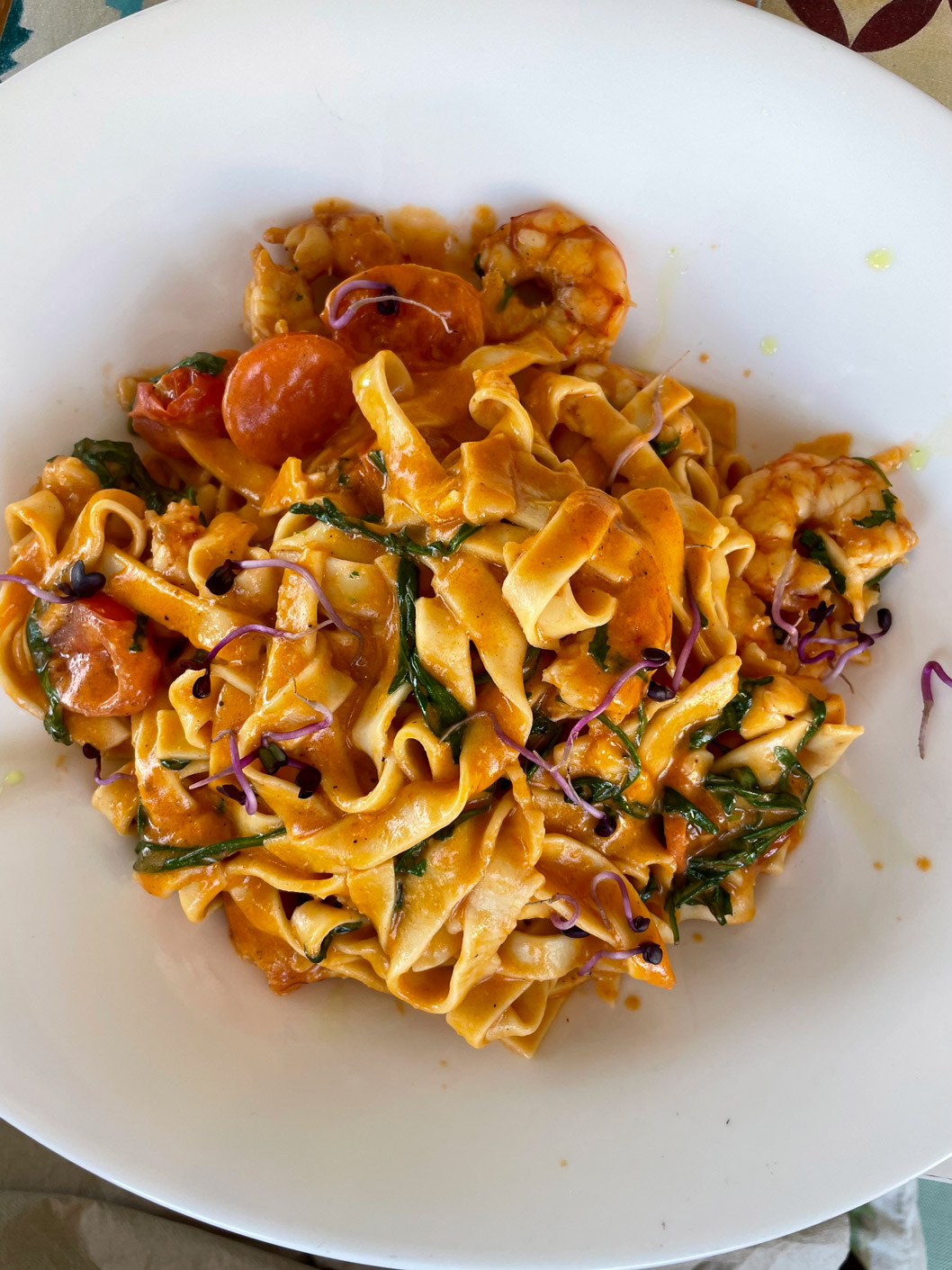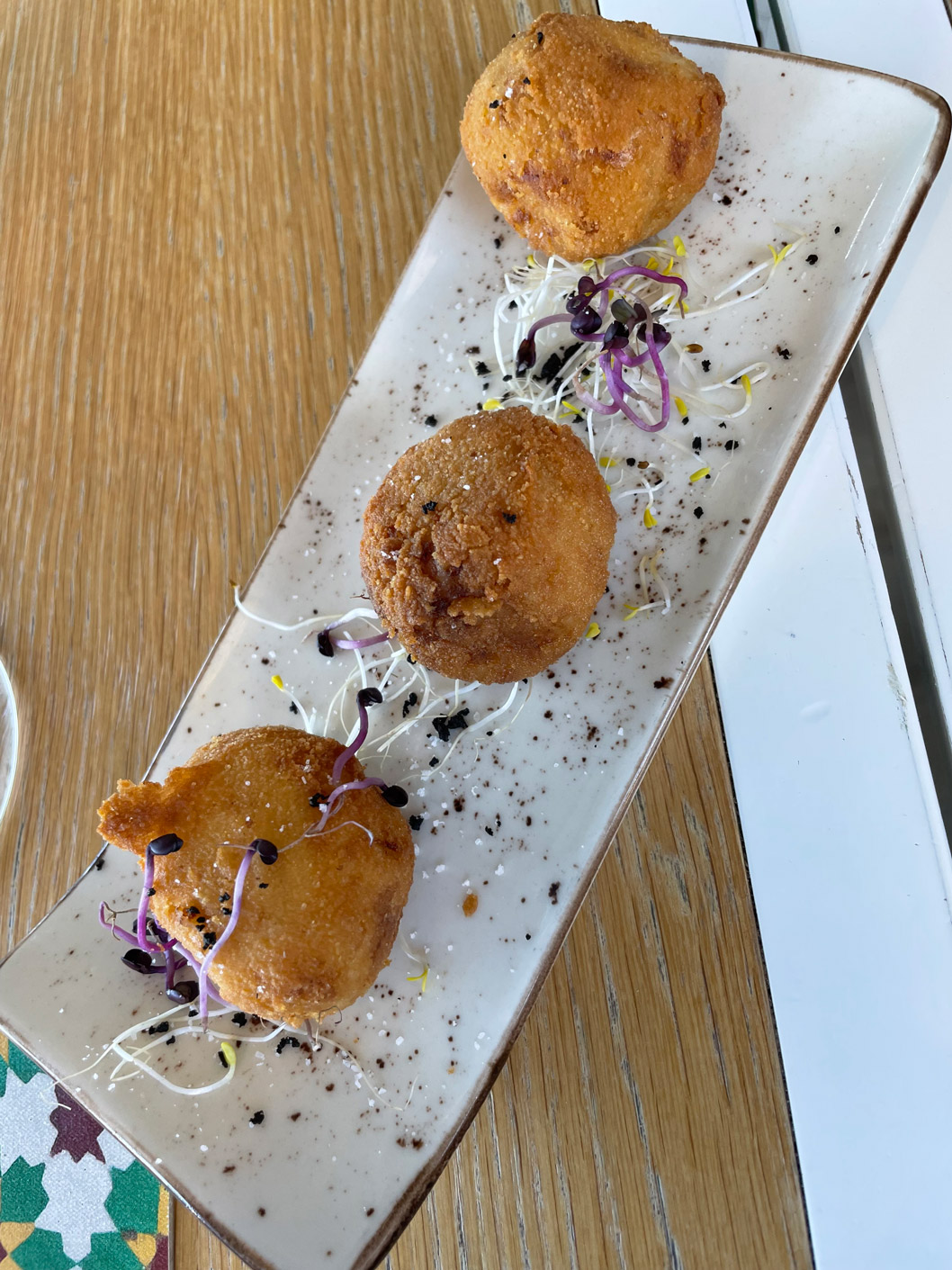 The menu is shown on a QR code on each table, but Milva, our Cuban server, came straight to the table to tell us about the specials that day. She’s a delightfully warm person with an engaging smile. As this was a first visit for two of us, Milva explained that everything’s made on the premises by the young Italian chef, Alessandro Raddato, who hails from the south of Italy but later lived in Florence.