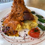 My main course was a generous and delicious bowl of Alessandro’s tagliatelle with prawns; my male companions each had lamb shank with sobrasada and mashed potato, which was a hearty dish for good appetites and went down well. We each had a glass of wine – which thanks to a special offer until the end of February – was included in the cost of the main course.