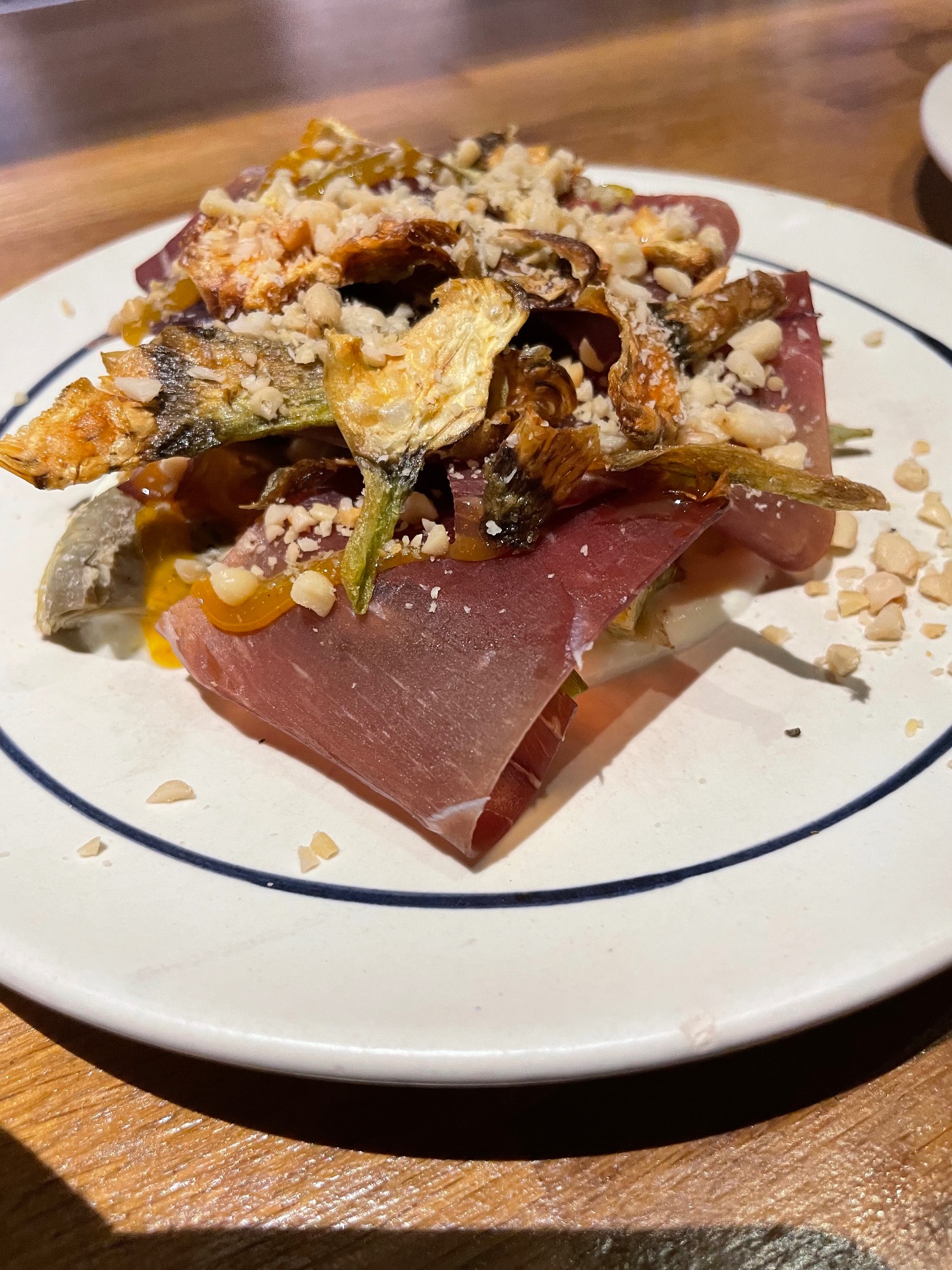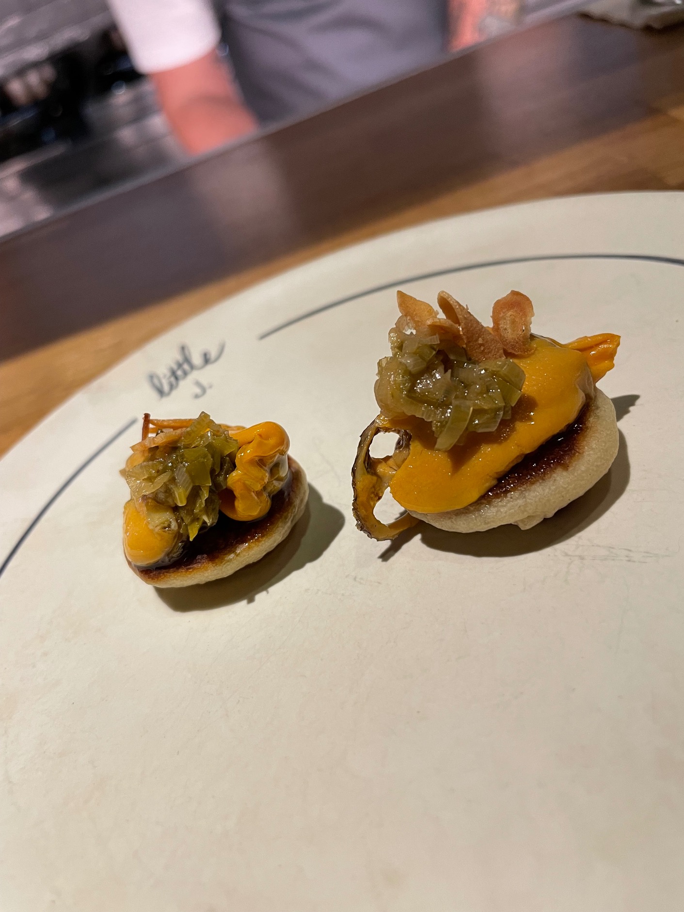 Our experience began promisingly with a complimentary appetizer of mussel escabeche on a small blini. The excellent bread at Little Jarana, served warm, is sourced from Palma’s Rosevelvet Bakery.