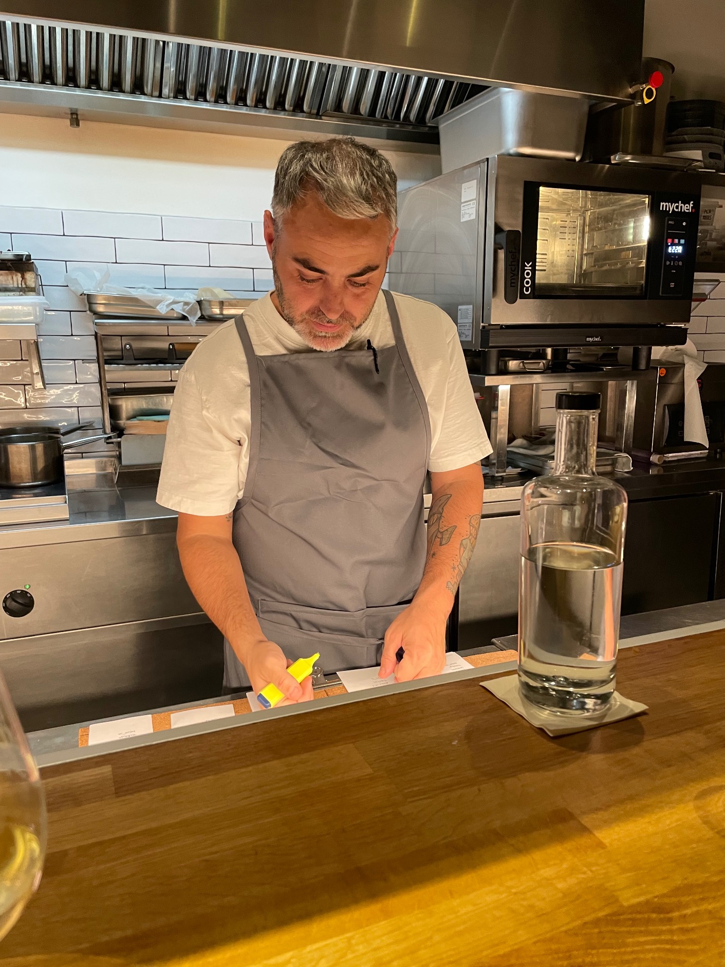 The handwritten menu changes every two weeks, although two plates – anchovies with bread and butter, and gnocchi with cockles and bottarga – are fixtures. On our visit, we had the choice of 11 dishes, including oysters and the catch of the day. I wish we could have tried them all, but stomachs and waistbands expand only so far!