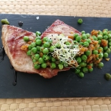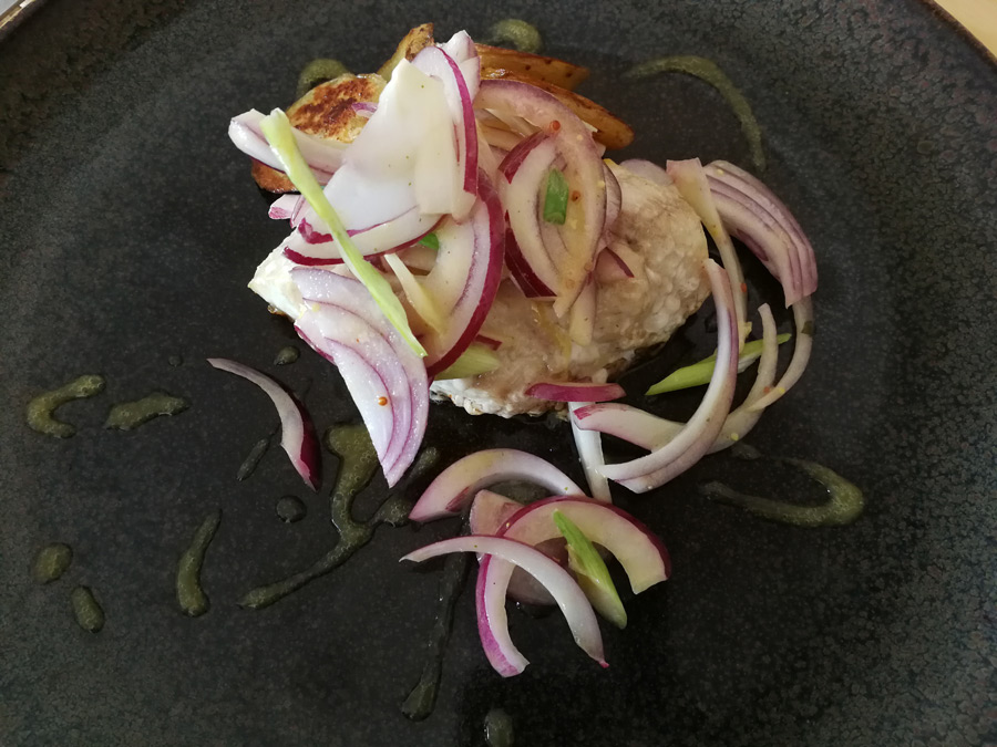 From Lume & Co’s suggestions of the day, two of us chose turbot, served with a potato ragout, green olive, and lime air (23,50 €). I had a satisfying and perfectly cooked sea bass loin with black rice (23,50 €).