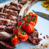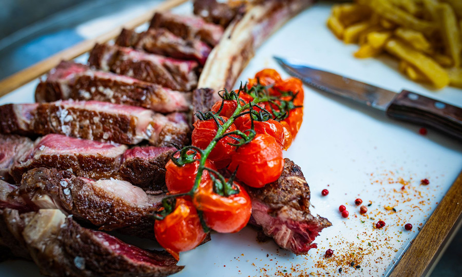 High-quality beef is what Lume & Co is all about: the meat is carefully sourced from farms where the cattle are raised in freedom and fed on natural food. As well as a sirloin steak, steak tartare, and Rossini sirloin, there are beef cuts for sharing: 15-day-aged T-bone (84 € for two); chateaubriand in a salt crust (74 € for two), and a 1.3kg Tomahawk matured for 45 days (127 € for two) – all served with triple-cooked potato wedges.