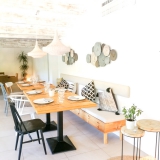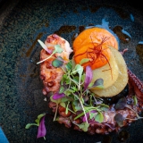 We ate indoors for lunch with a friend this month. We found him waiting on a sofa in front of the blazing log fire – a welcome addition for the cooler months in a large space with high, beamed ceilings, and exposed stone walls. The general ambience feels cosy despite the size of the main dining room, thanks to the clever use of lighting. A further dining space is filled with natural light.