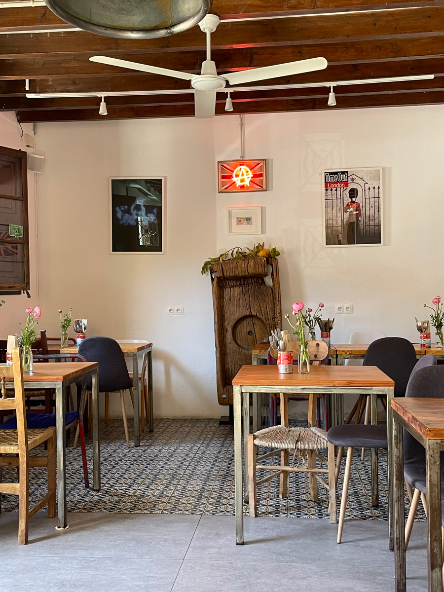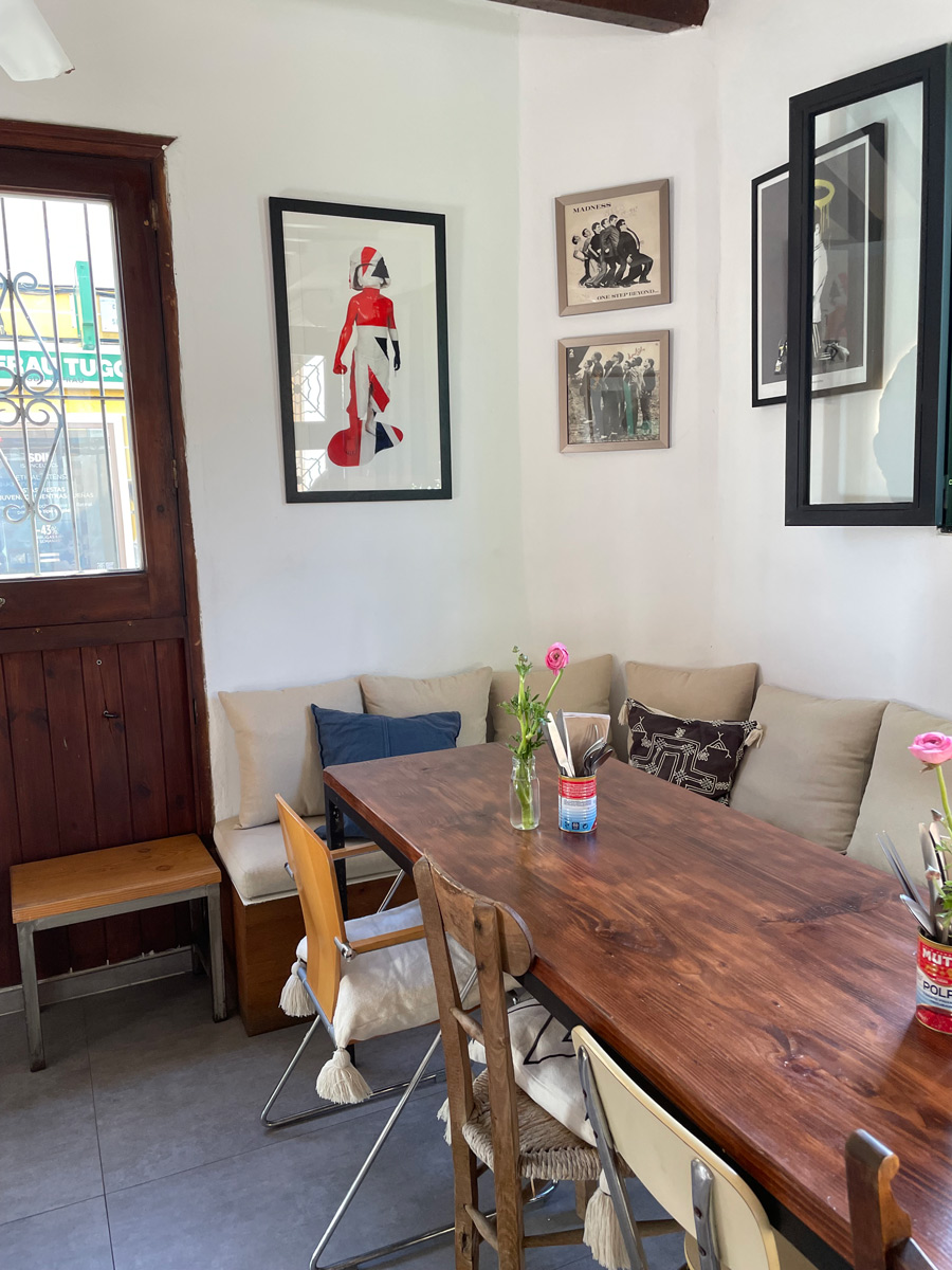 Like other eateries in this bohemian district of Palma, the green-shuttered Market Kitchen is in an old house, with beams and white-painted walls. Here though, you’ll find Brit-pop art among the couple’s personal items displayed on the walls.