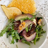 Rob works in the open kitchen at the rear of the restaurant, under an illuminated ‘Stage Door’ sign; watching him is indeed theatre. Amber keeps everything under her watchful eye, as well as rustling up the tempting cocktails – such as the refreshing cucumber martini I sipped during our last visit. Try her London blackberry brambles cocktail – a new twist on this seasonal fruit.