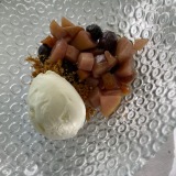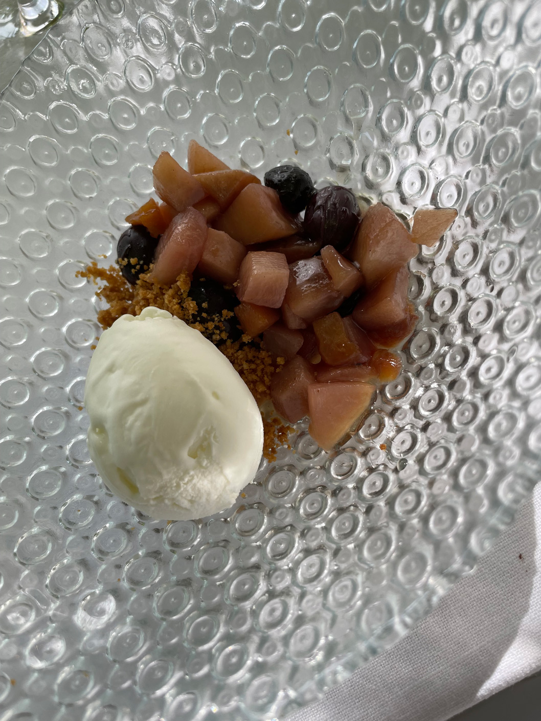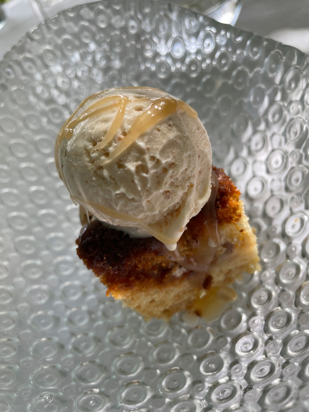 Desserts were a lightly sautéed fruit salad (with a hint of Amazonia rum) with yogurt ice cream, or a banana ‘blondie’ with peanut toffee and almond ice cream.