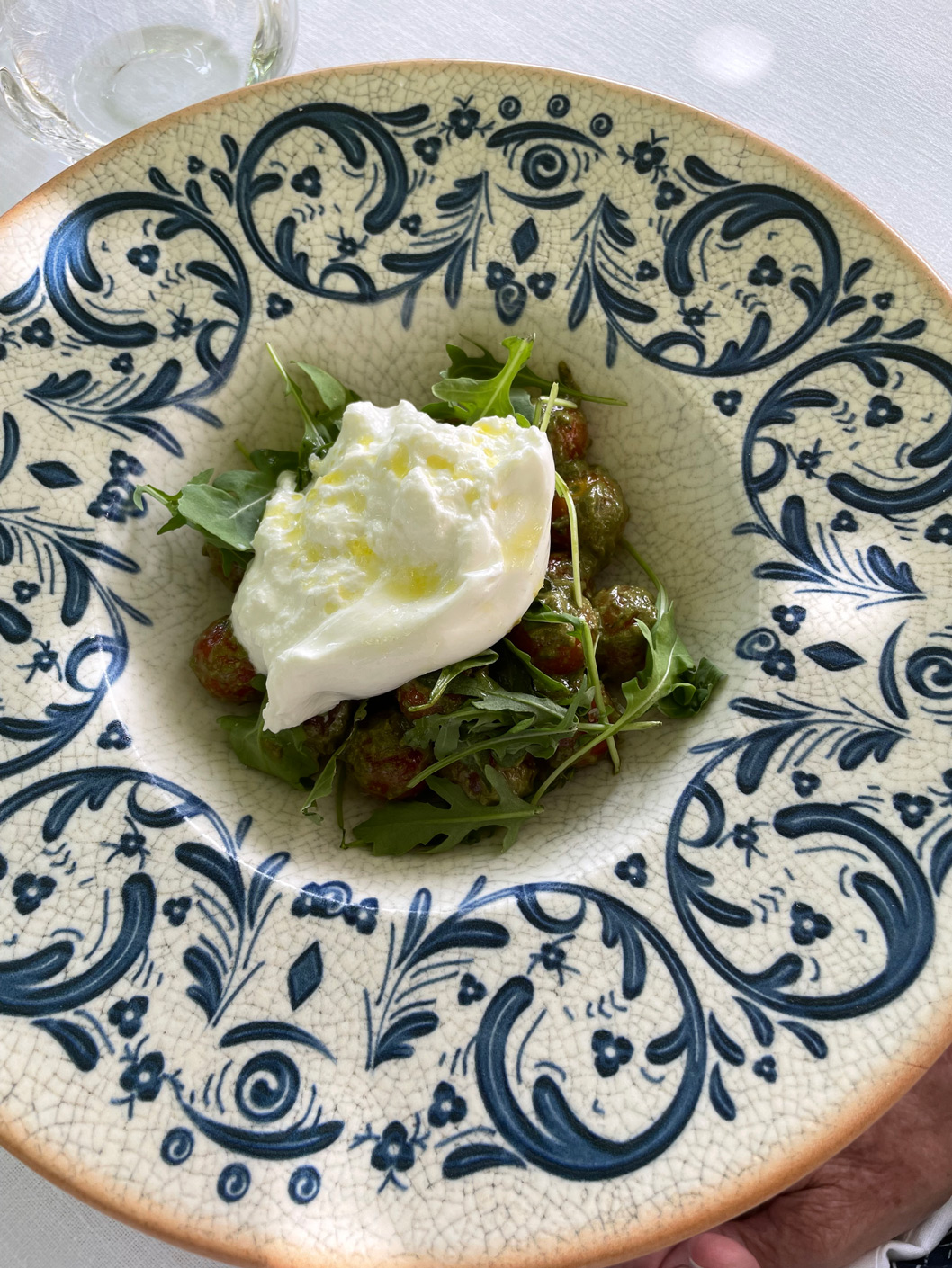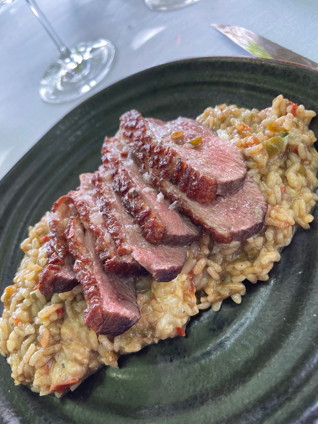 A glass of wine (red, white, or rosé) is included in the price, and sommelier Amy Dunn gave us an explanation of the Mallorcan red she suggested to accompany the duck. As in our past experiences here, Amy’s recommendation was spot on.