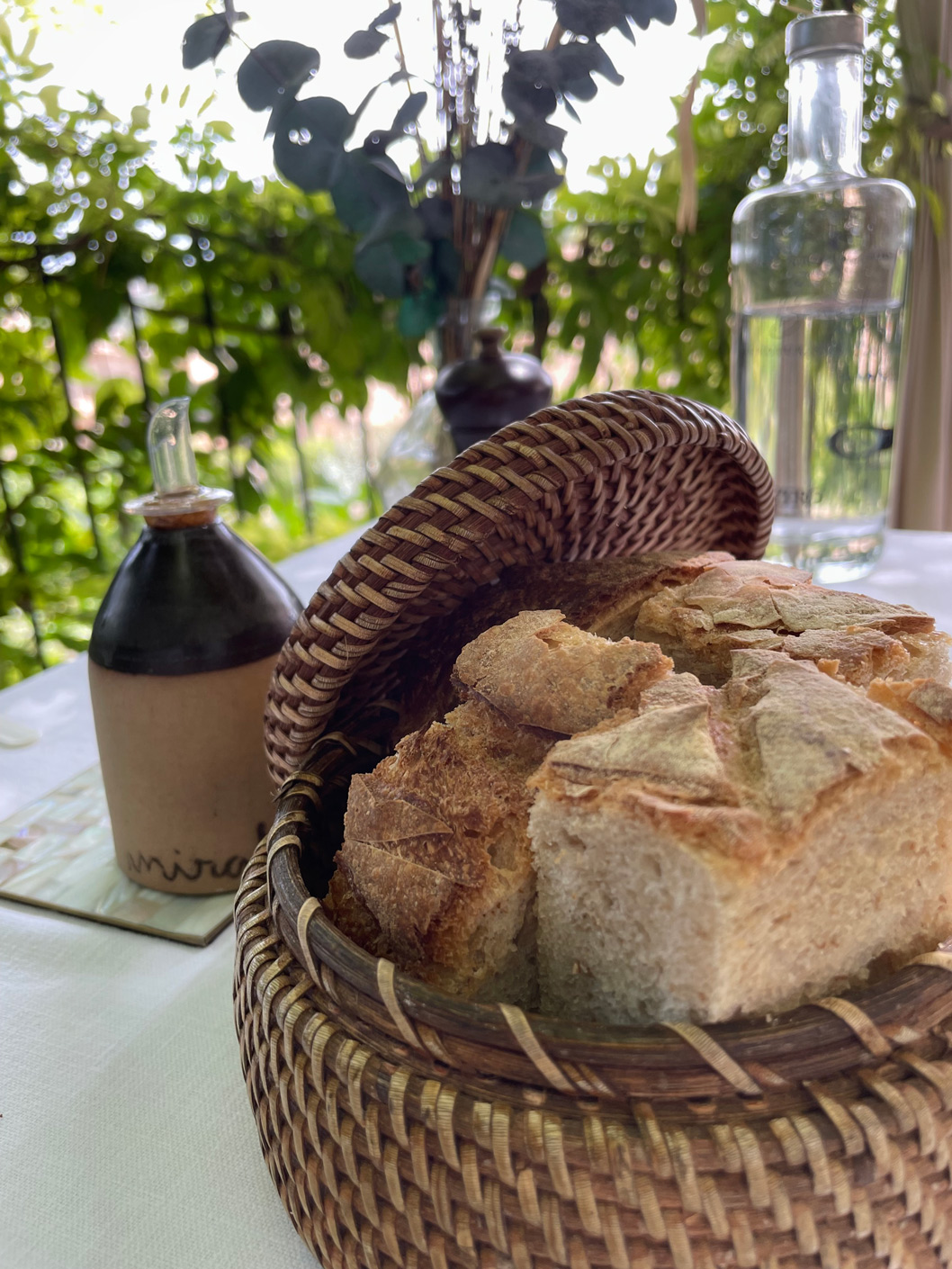 The new weekday lunch menu changes every Monday. You get Mirabona’s own bread (made with mother dough), extra virgin olive oil from the estate (pressed in the tafona you pass on entering the hotel), three courses (with choices), a bottle of water, a glass of wine, and coffee. For the quality of the whole experience, I think the 35€ a head we paid was excellent value.