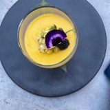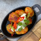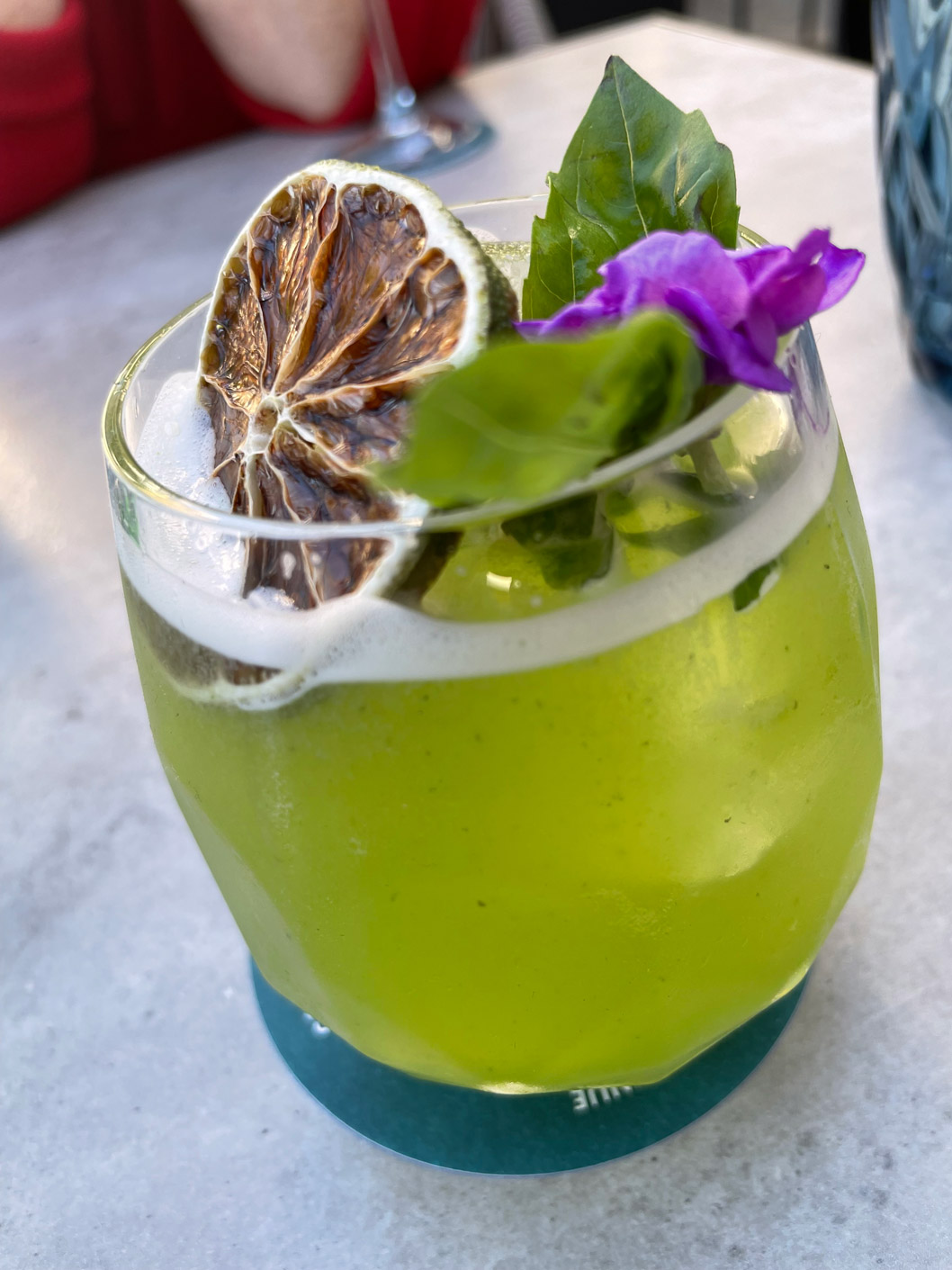 Our ‘Bigger Plate’ dish was local lamb shank buried in a massaman curry-filled puff pastry pie (24 €) – the tender, slow-cooked meat fell off the bone and bathed in the fragrant curry was a joy to eat. A side of crisply caramelized local baby potatoes with labneh provided textural contrast. A few vegetarian and vegan options are offered.