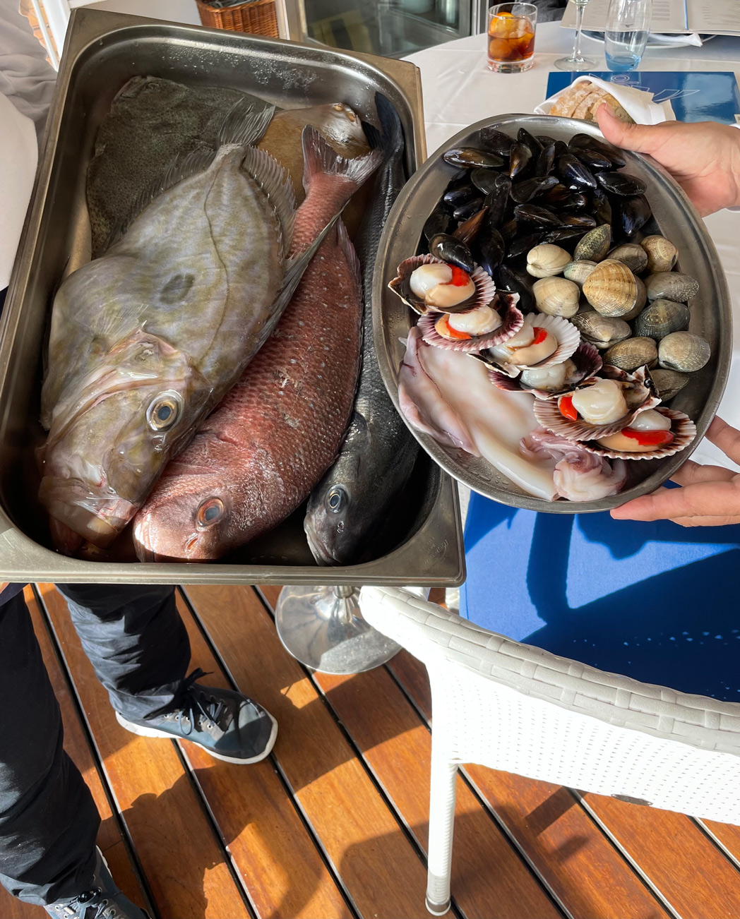 Before we’d ordered, servers brought platters of the fresh fish of the day for us to see. Although tempted by the platter of shellfish, we went for the menu.