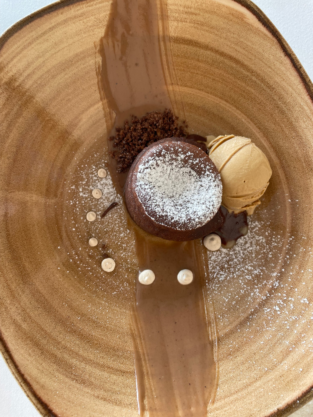 From the five desserts, we had passion fruit tart topped with toasted meringue and a loquat coulis (7,35 €) – which I really enjoyed – and chocolate coulant. We ended a pleasant and relaxing lunch with a Marabans coffee.