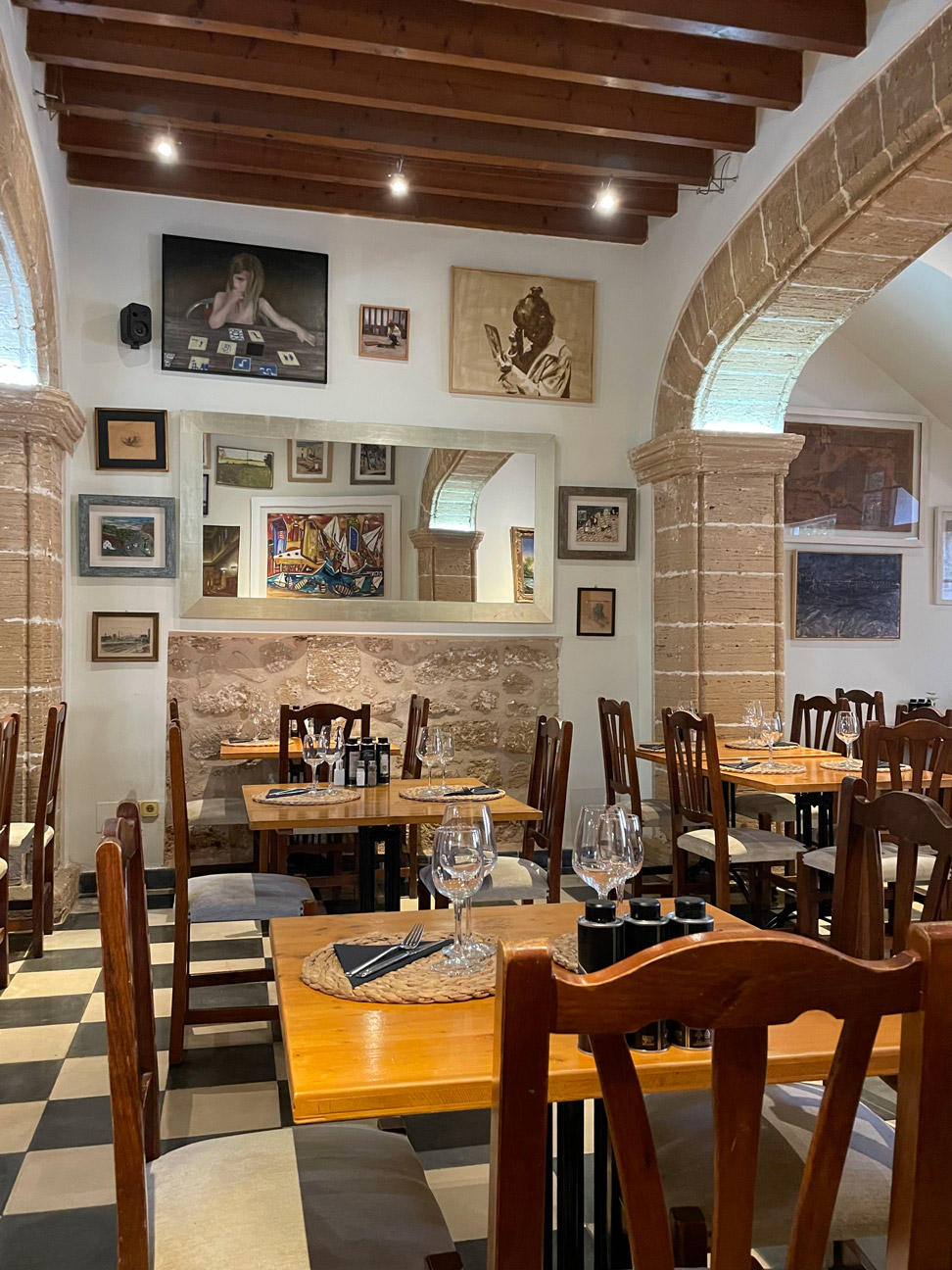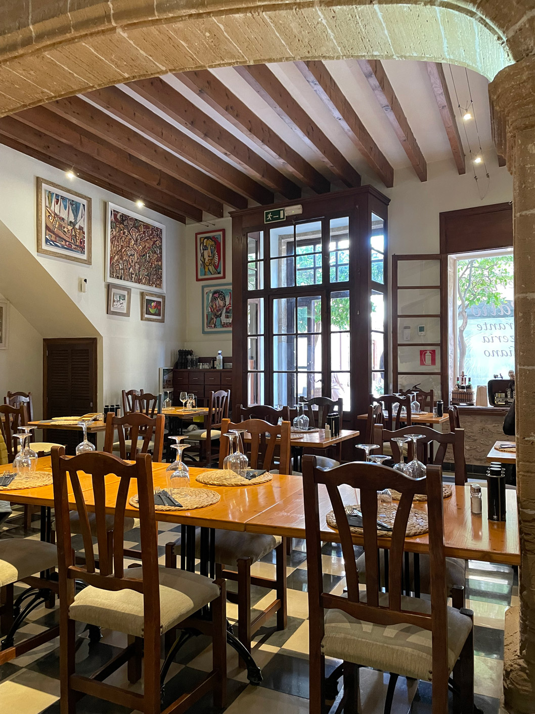 The interior has ceiling beams, a tiled floor, and handsome stone arches that are typical ‘mallorquín’ architectural features. Since my last visit, Roberto has added an impressive Italian pizza oven and the menu (which you can find on Osteria El Patio’s website) offers ten pizzas (priced from 9€ to 18€) as well as pasta, fish, and meat dishes.