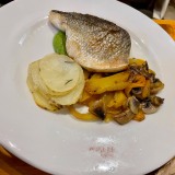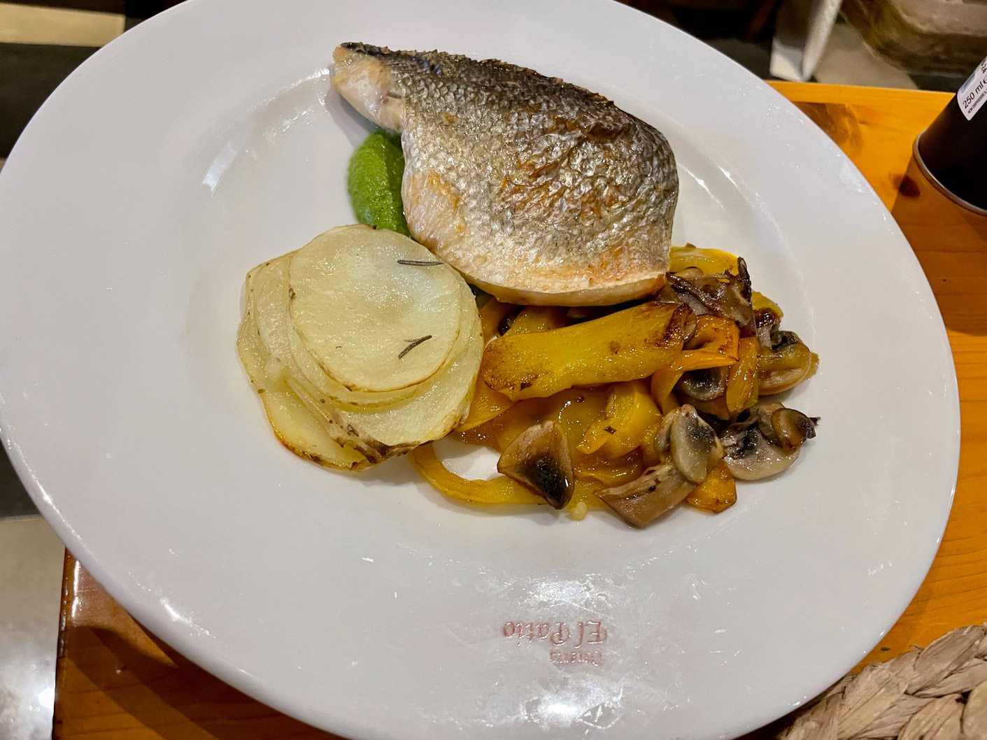 Across the table, my companion enjoyed his fillet of sea bass (25€).