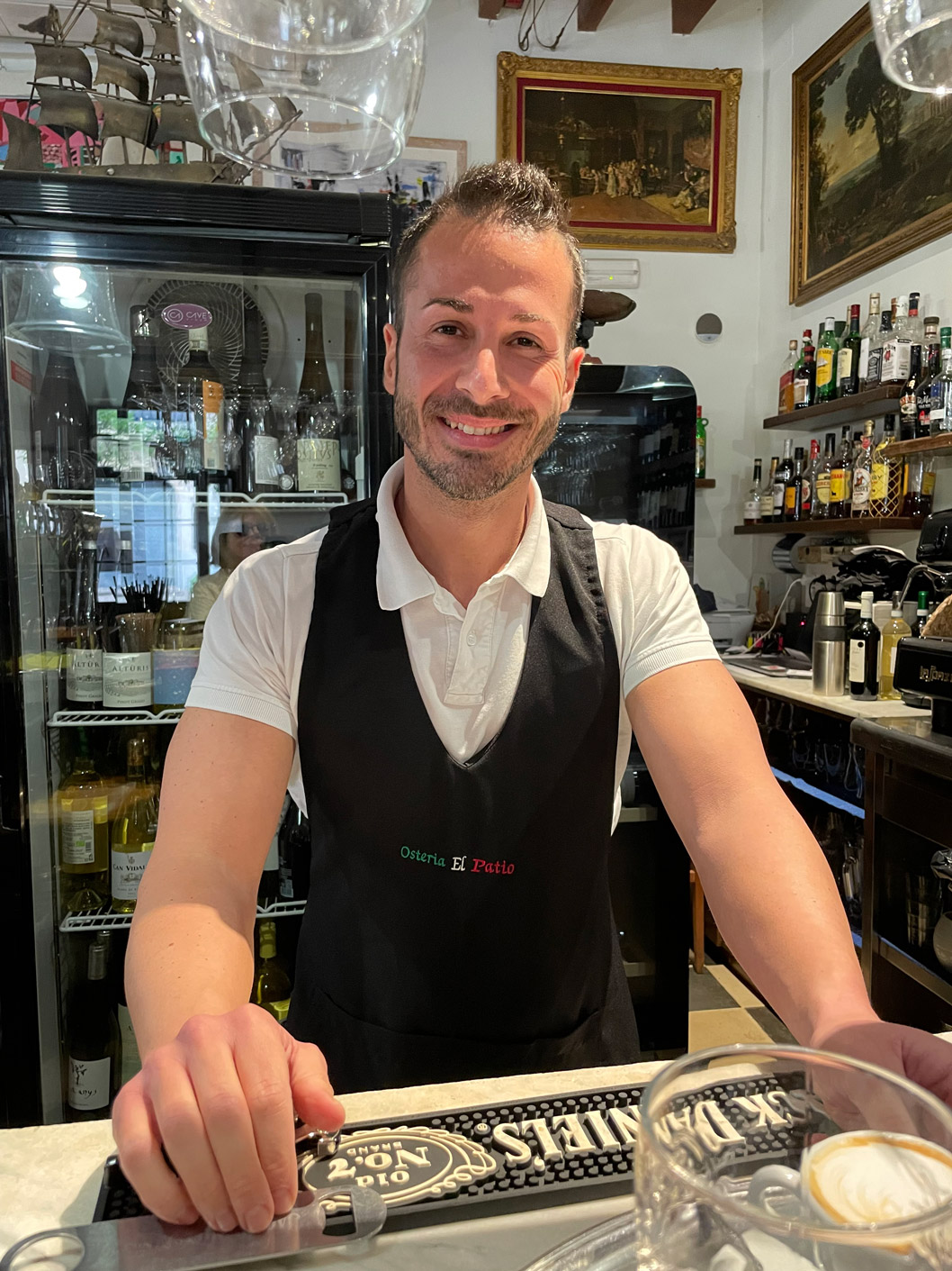 This winter, Osteria El Patio’s charming owner, Roberto Balzano, has kept the restaurant open – a bonus for those of us exploring this honeypot location during the quieter months. The patio, of course, is closed for now but the interior is also attractive.