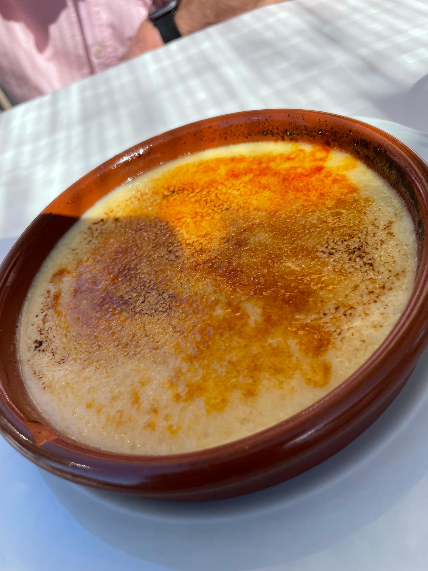 Desserts include affogato – vanilla ice cream topped with expresso (5€), various flavours of ice cream and sorbet (3€ per scoop), home-made crema Catalana (6€), and the delicate French cake known as a financier, served with roasted almond ice cream (8€). I had blackberry sorbet, which was a bit icy in texture but well-flavoured; my companion enjoyed his crema Catalana.