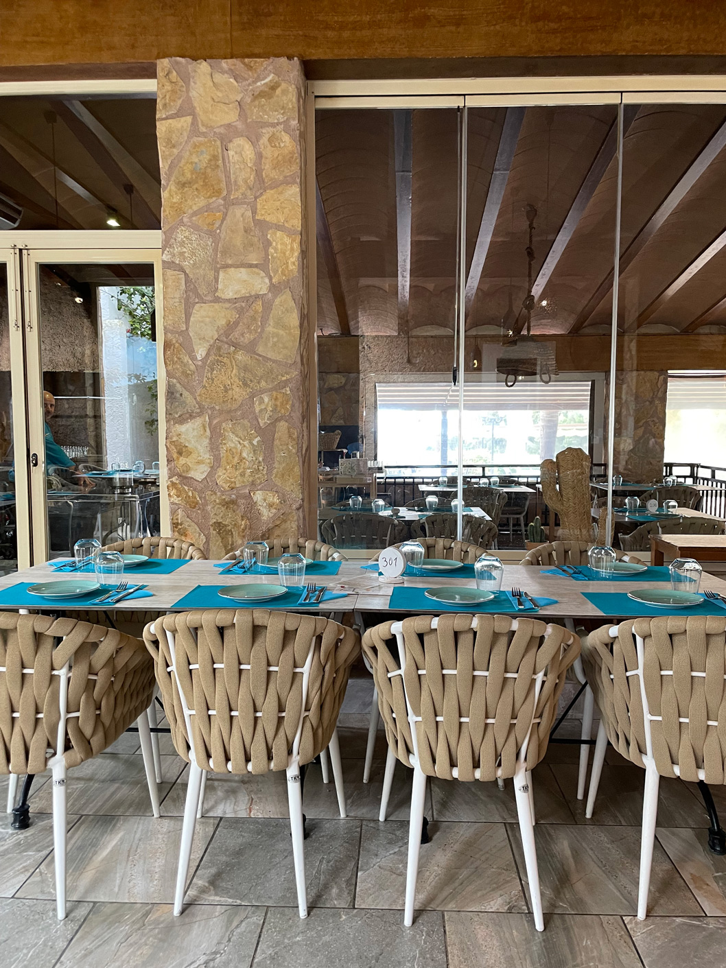 We ate lunch indoors, sitting at a Formica-style-topped table with disposable placemats and serviettes, but noting the comfortable dining chairs. It was the first day of the 2025 season and two Mallorcan family groups were already eating when we arrived.