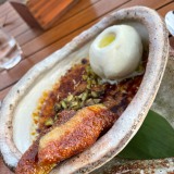 We ended dinner with one scoop of coconut sorbet (3€) and a rich and tasty miso brûlée (15€).