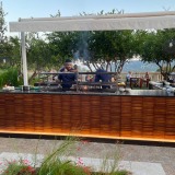 The cooked dishes are prepared on the robata grill, a traditional Japanese method of cooking over charcoal that gives great flavour. The robata is located on the terrace, where you can see the chefs at work. Indoors, another team prepares the signature sashimi, tatakis, maki rolls, and sushi.