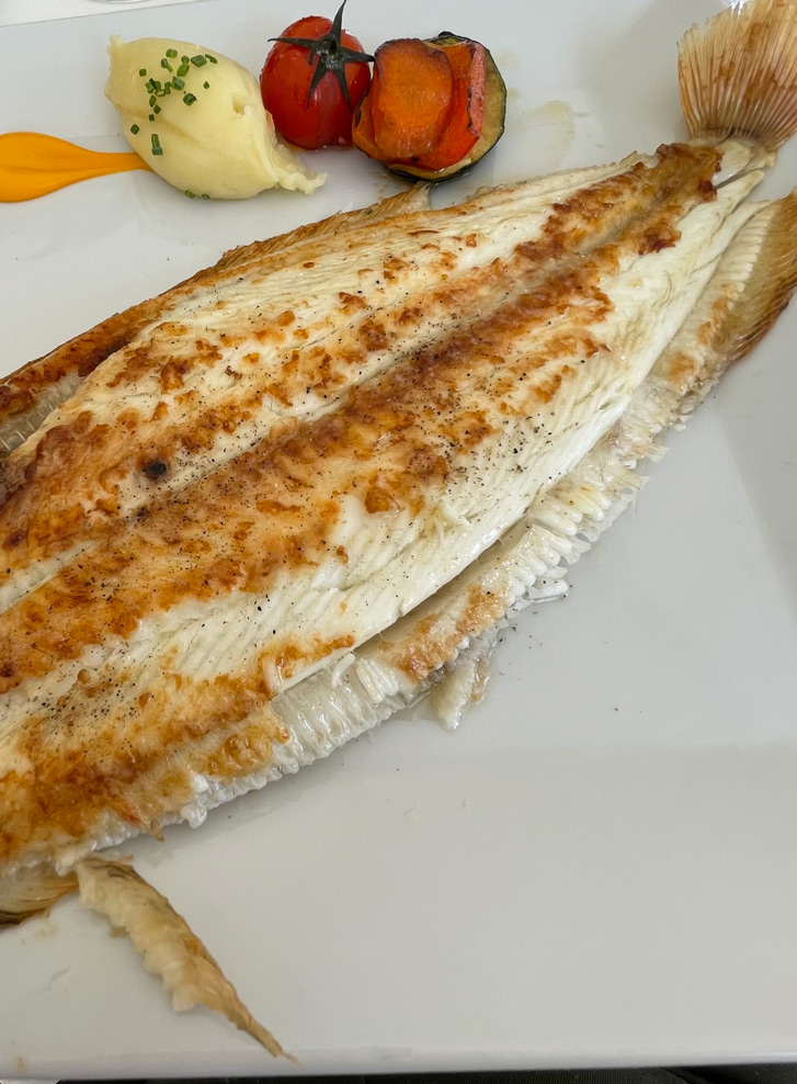 For the main course, we both chose grilled fresh sole – a decent-sized fish that was cooked to perfection (35 €). Other dishes include salads, rice dishes, and meats. Meat lovers should enjoy the stone-grilled Chateaubriand or aged beef T-bone steak.