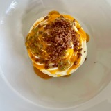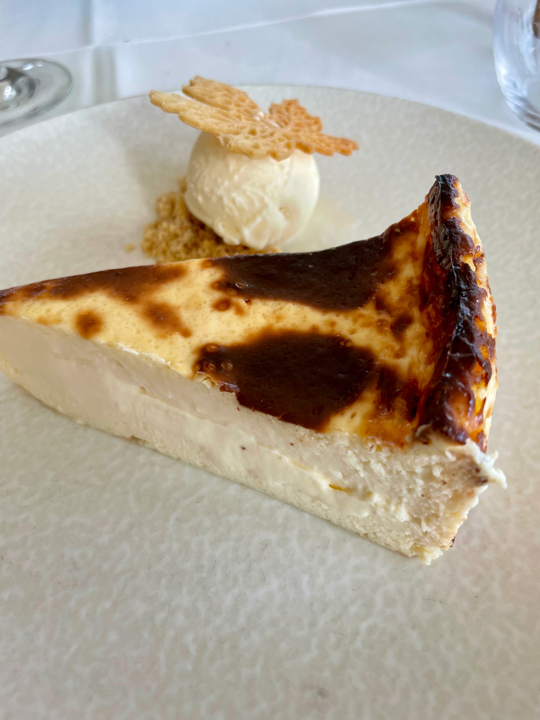 Our desserts were white chocolate and yogurt ganache with passion fruit (9 €) and Paul’s recommendation of home-made baked cheesecake with hazelnut crumble (9 €). Rich and creamy, it was a naughty treat.