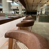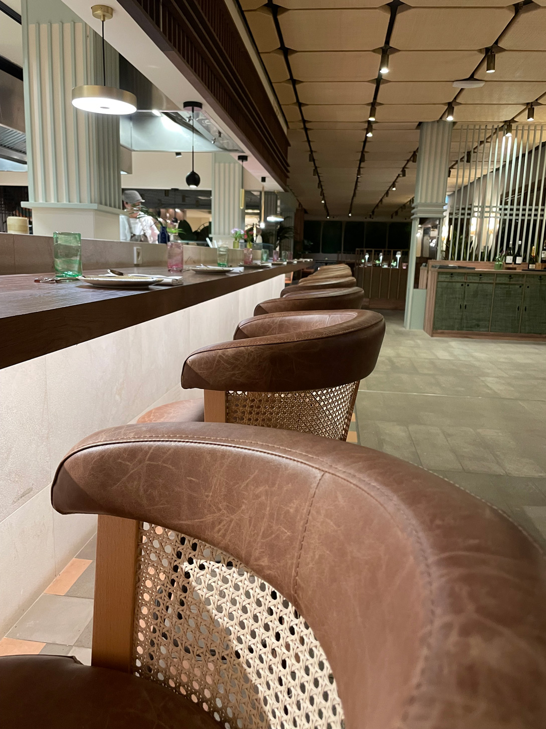 On arrival at SABA Restaurant, we sat at the counter to watch the chefs at work in the large, open kitchen, rather than at one of the conventional tables indoors or in the conservatory-like dining area (which will be appealing once the summer heat has gone).