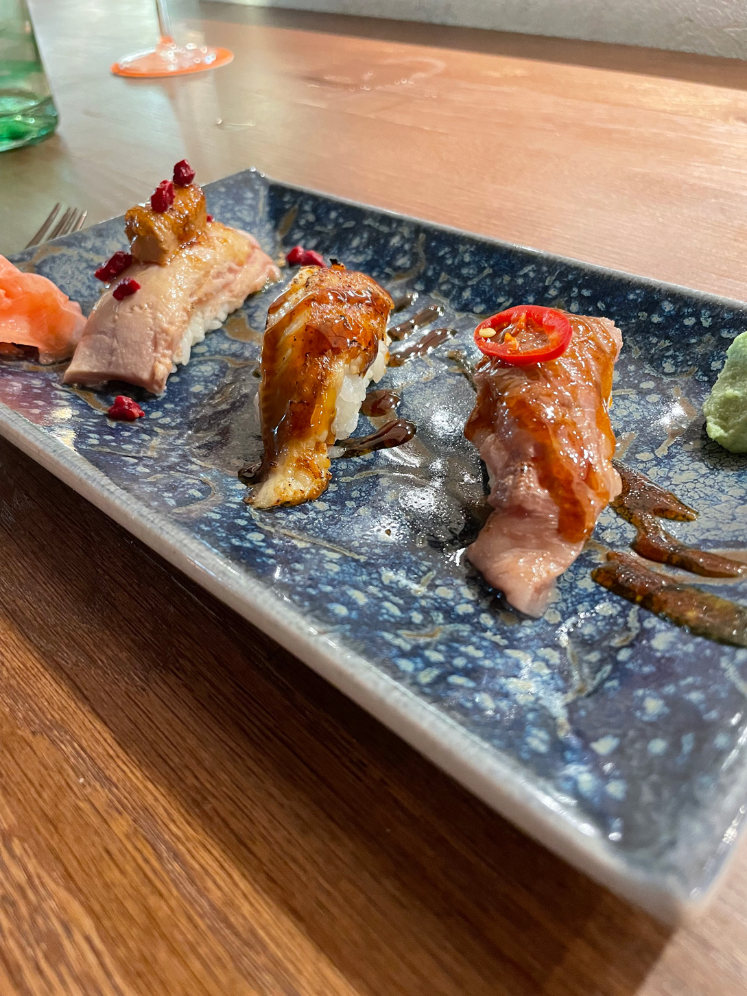 We were there for the Omakase menu. The word ‘omakase’ comes from the Japanese word for ‘to entrust’ – which means the chef chooses what dishes to serve to diners. What you get at SABA is a carefully chosen compilation of Japanese and Korean dishes – five for 60 €.