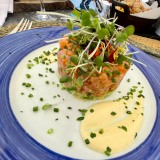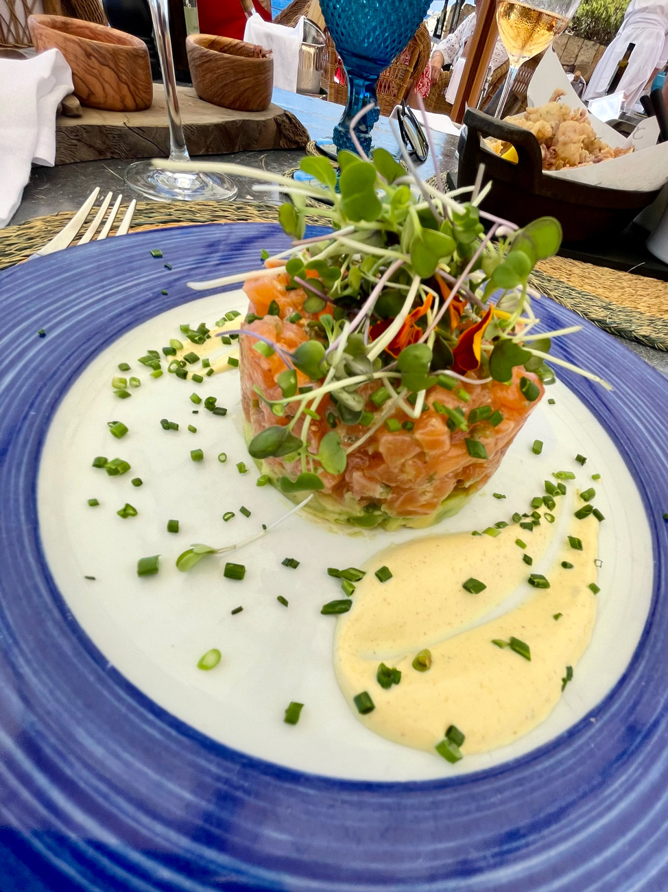 A smiling member of the team greeted us and showed us to our table. There are several al fresco dining areas – some with director’s chairs, others with wicker seats, and several types of shade. The ambience is relaxed. A small dining room means it’s also good for the cooler months, as Sea Club is open until November 12th.