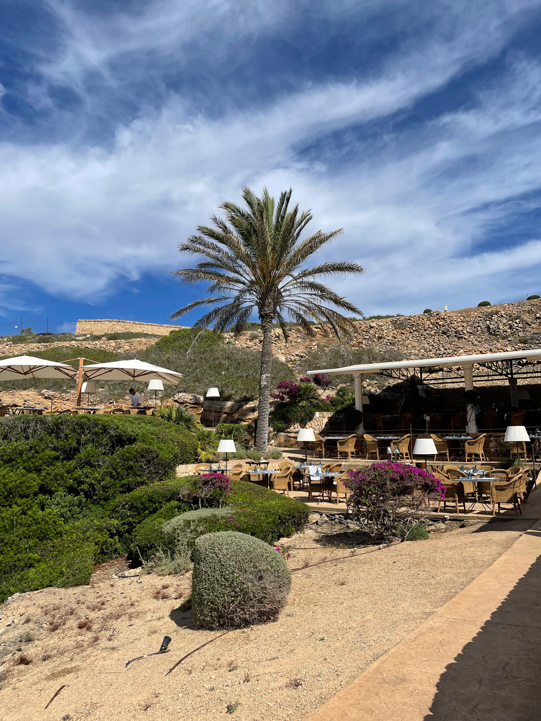 Cap Rocat is in a protected natural area and Sea Club sits down on the coast at the edge of Caló de la Reina, with awesome Bay of Palma views. Golf buggies transfer diners between the hotel entrance and the restaurant, via a steep driveway.